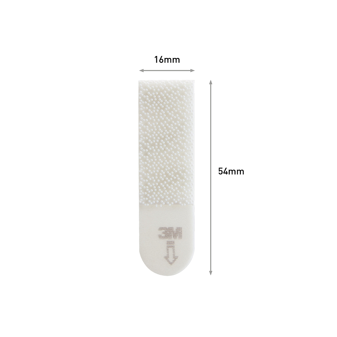 Pakkaus sisältää 4 sarjaa valkoisia, kapeita liuskoja. Kestää jopa 2 kg painavan kehyksen, jonka mitat ovat enintään 20 x 25 cm.