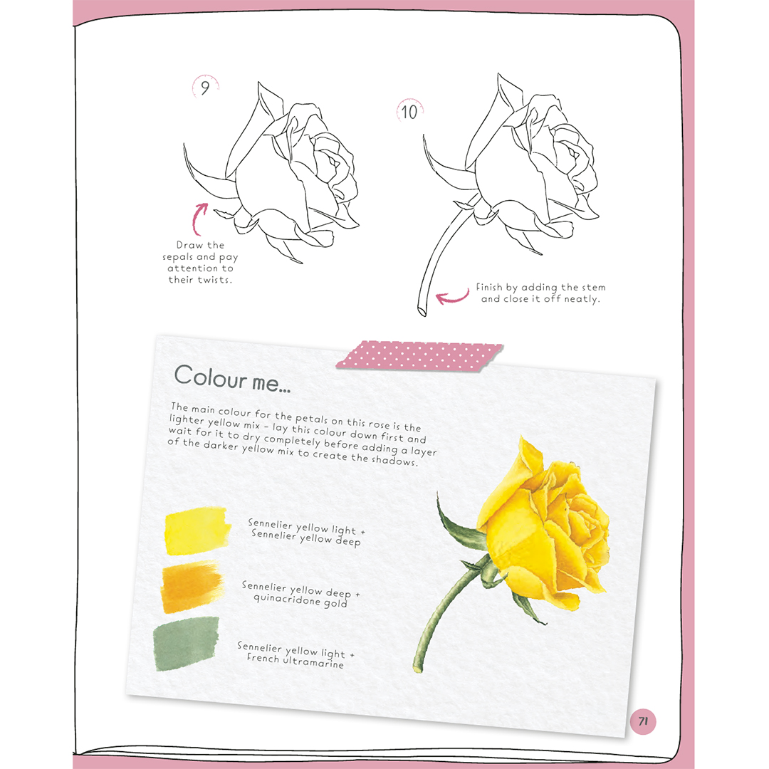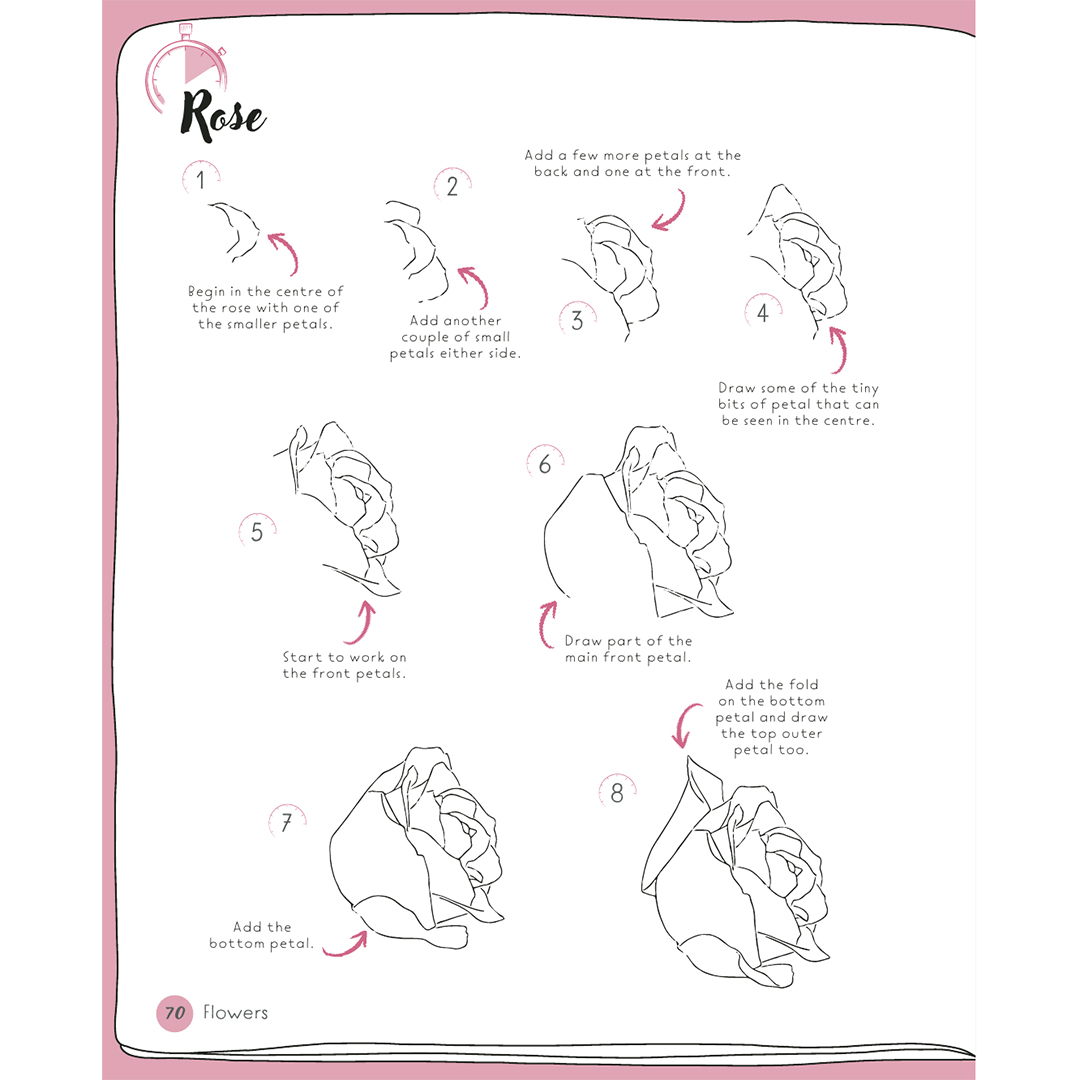 Jokainen projekti sisältää 6–10 kuvitettua vaihetta, selkeät ohjeet sekä inspiroivan ”väritä minut” -laatikon, jossa on värisekoituksia ja vinkkejä, jos haluat viimeistellä piirroksesi väreillä – Emman esimerkeissä käytetään akvarelleja, mutta voit käyttää mitä tahansa välinettä.