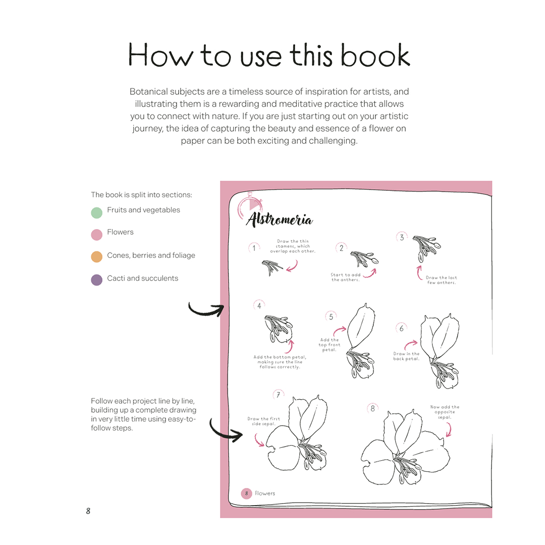 Tämä kirja sopii täydellisesti aloittelijoille, jotka eivät ole koskaan piirtäneet ja haluavat helpon oppaan suosikkikukkiensa ja muiden aiheiden piirtämiseen; se on myös erinomainen inspiraation lähde kokeneemmille kuvittajille, jotka etsivät luonnosideoita ja haluavat havainnoida ja toistaa kasvitieteellisesti tarkkoja rakenteita.