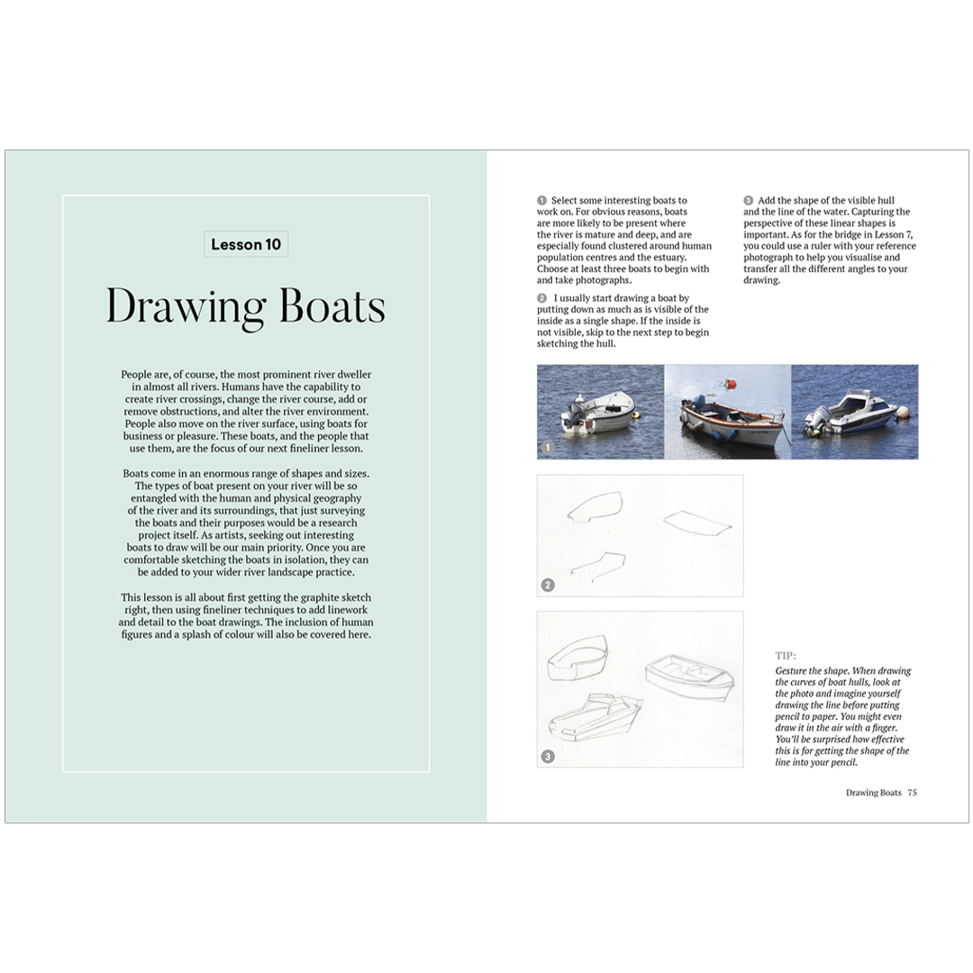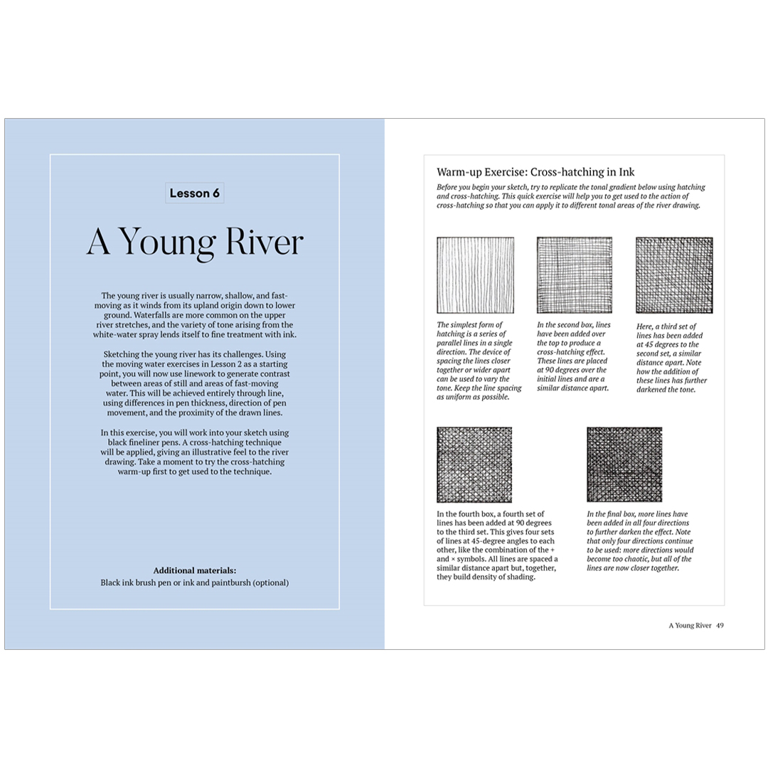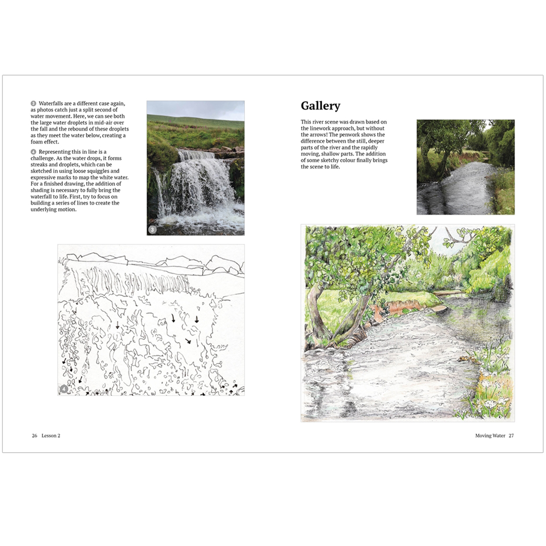 Vuodenajasta ja säästä riippumatta How to Draw a River inspiroi sinua näkemään luonnon uusin silmin ja tallentamaan joen muuttuvan kauneuden suoraan luonnoskirjaasi.