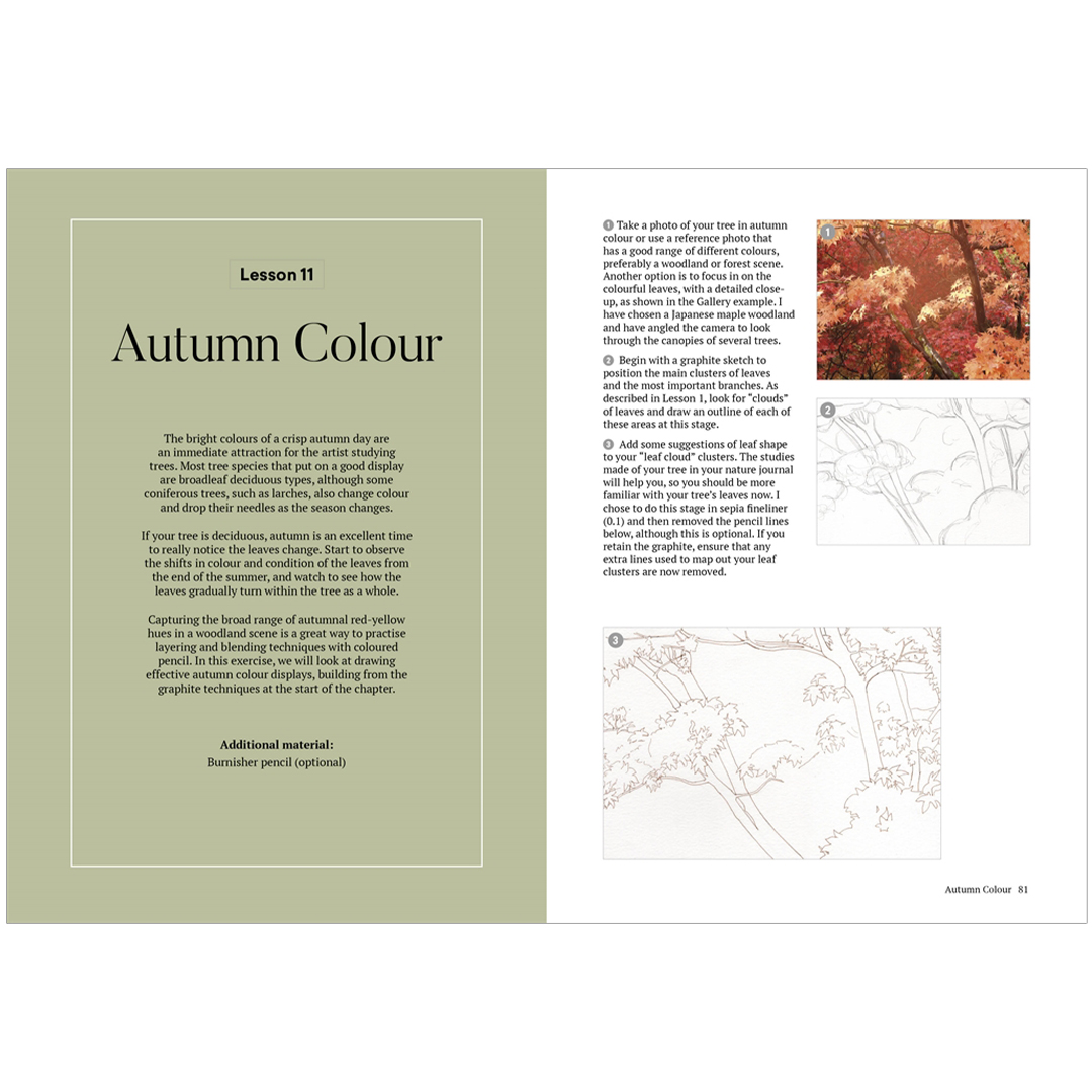 Vuodenajasta tai säästä riippumatta How to Draw a Tree inspiroi sinua näkemään luonnon yksityiskohdat uusin silmin – ja tallentamaan sen muuttuvan kauneuden suoraan luonnoskirjaasi.