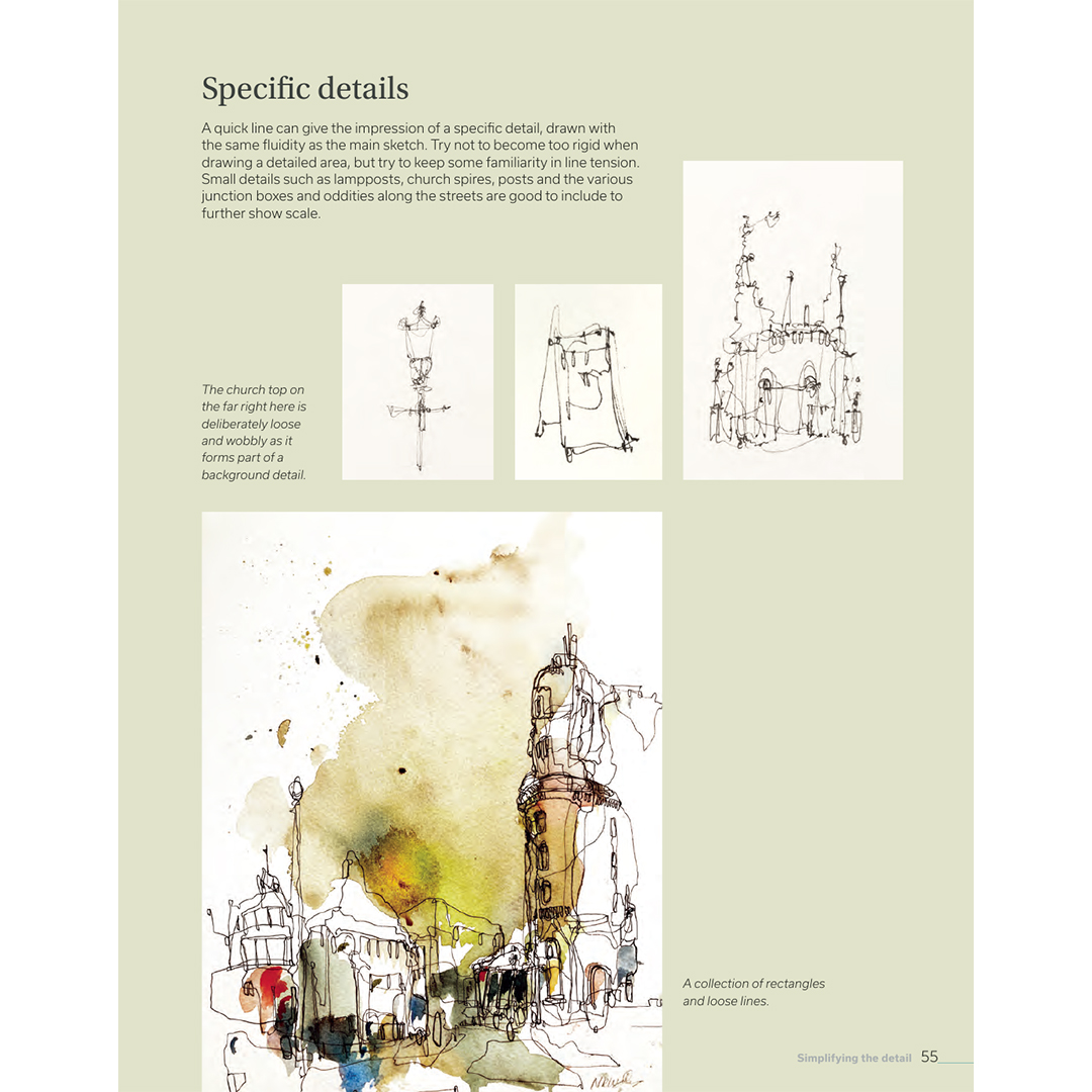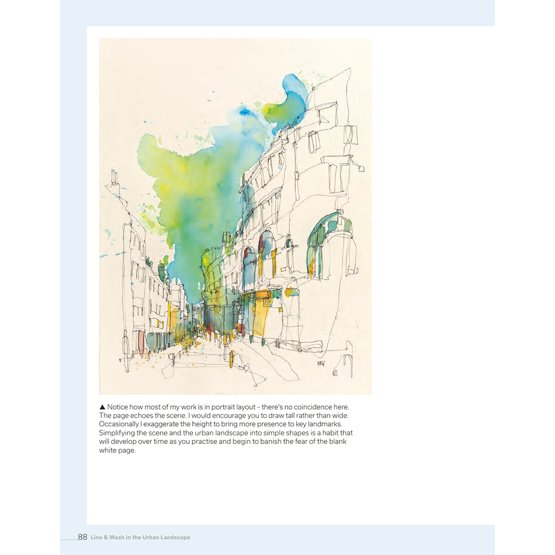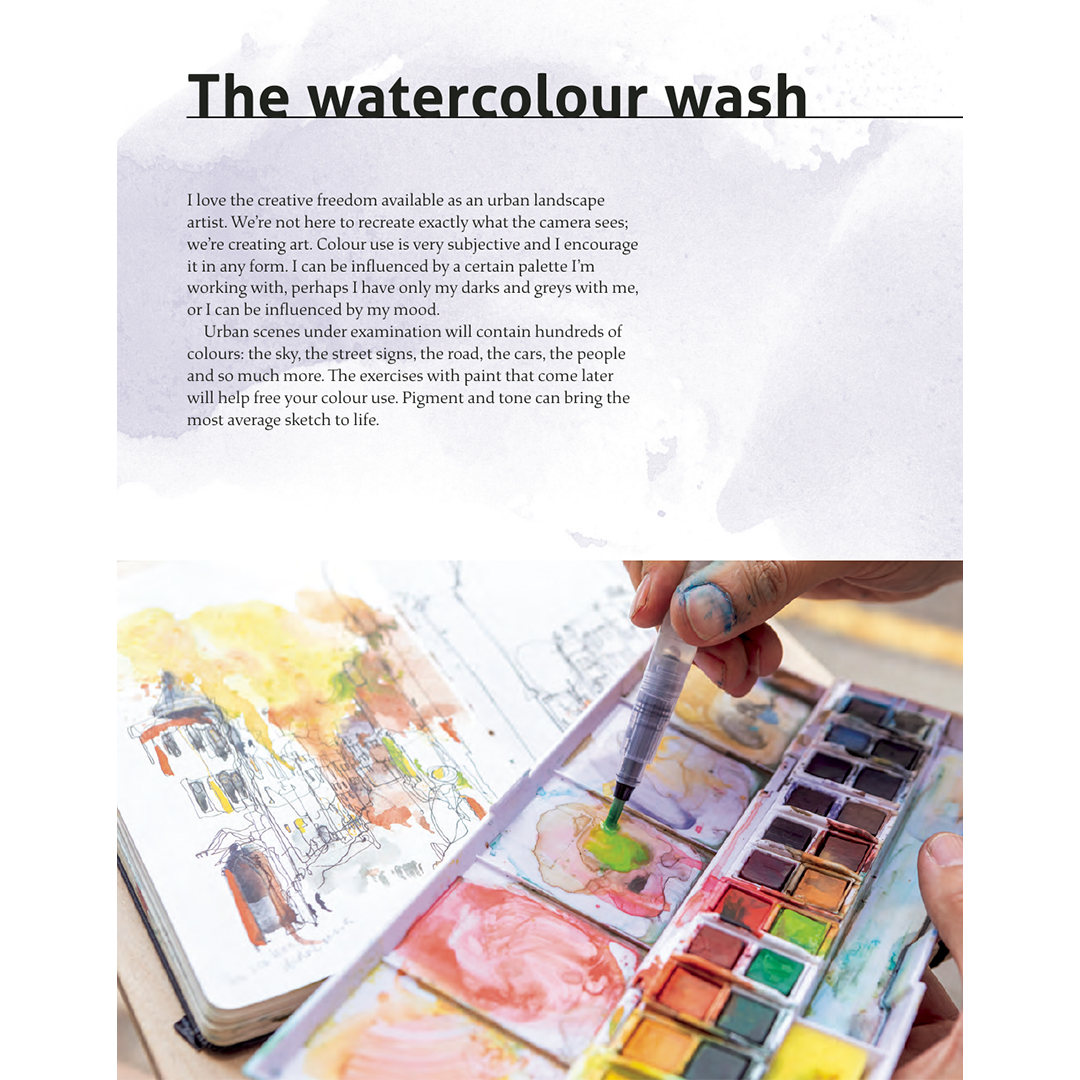 Olitpa sitten aloittelija, joka haluaa kokeilla ulkona piirtämistä, tai kokeneempi urban sketcher, joka haluaa vapauttaa tyyliään ja käyttää vesivärejä uudella tavalla, tunnettu kaupunkimaisemataiteilija Neil Whitehead auttaa sinua herättämään suosikkipaikkasi eloon paperilla.