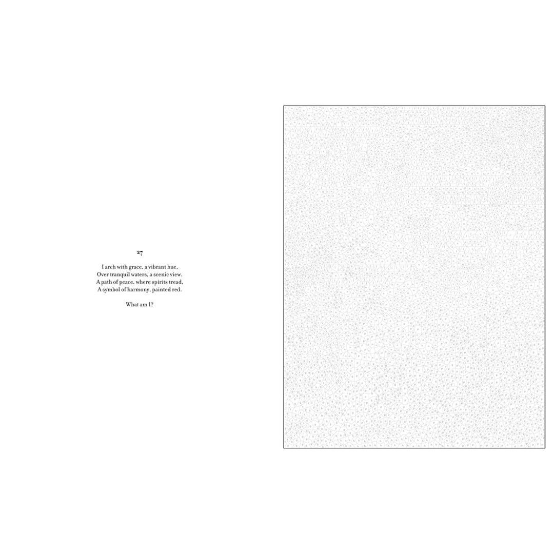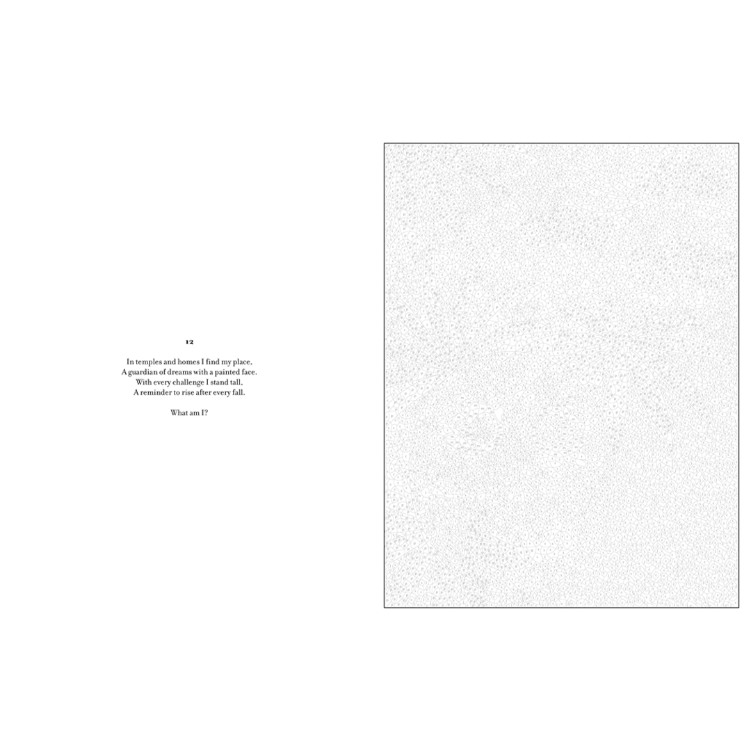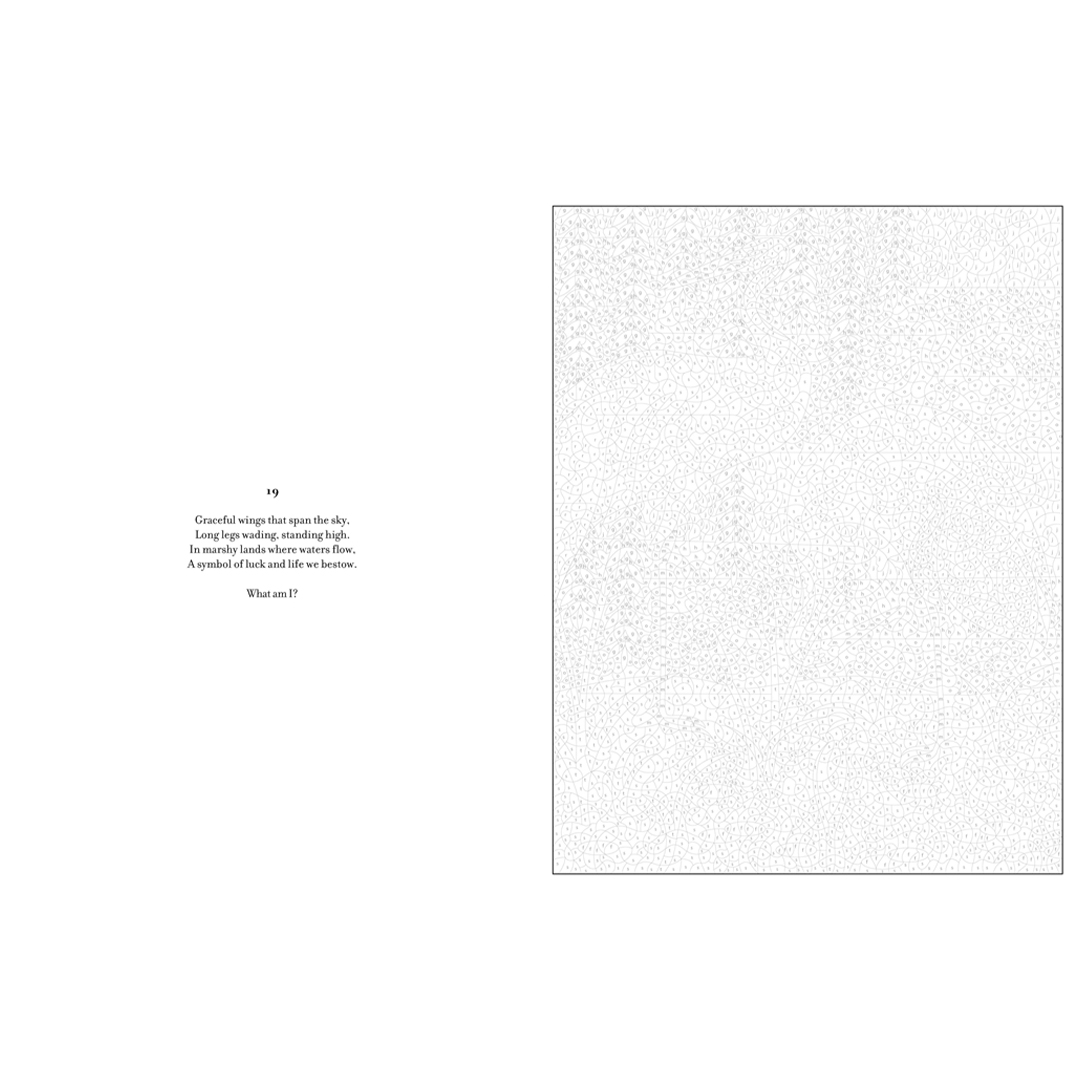 - Lisähauskuutta tuo se, että jokaisessa kuvituksessa on arvoitus, jota voit pohtia samalla kun herätät kuvan eloon. Löydät vastaukset sanoin ja kuvin kirjan lopusta.