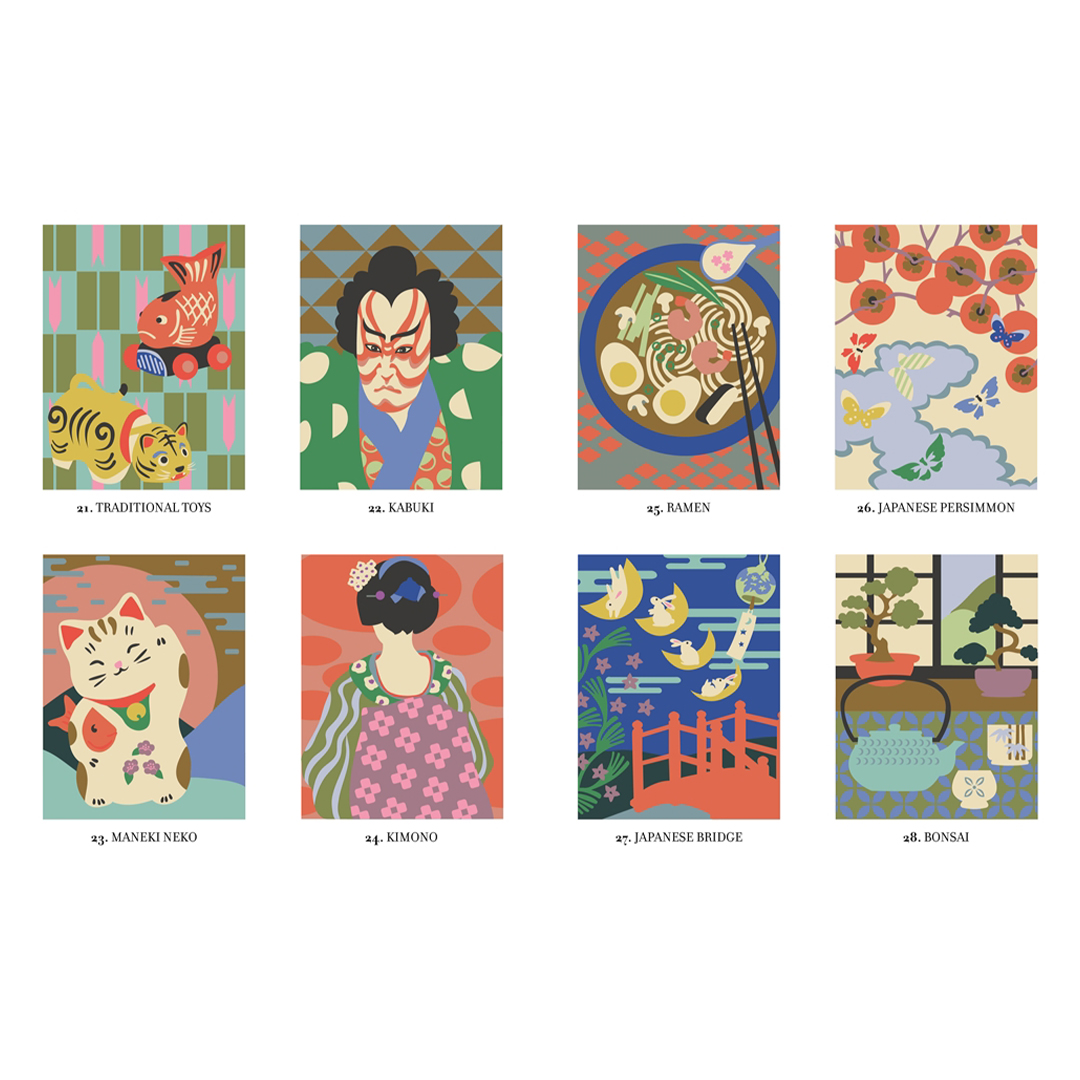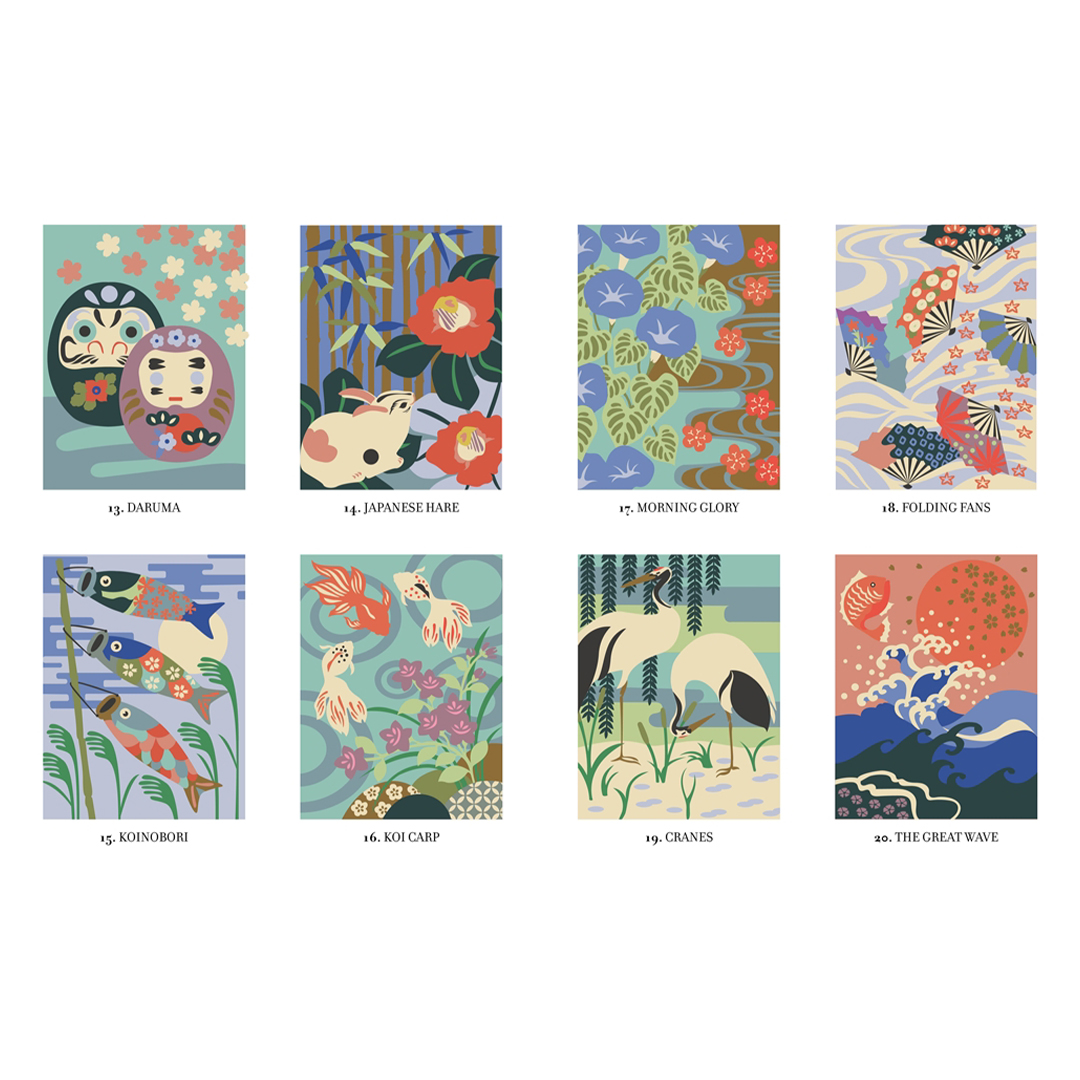 - Jokainen 30 uudesta ja modernista kuvituksesta esittää värikkään Japan‑teemaisen sivun, joka paljastuu värittäessä numeroiden mukaan.