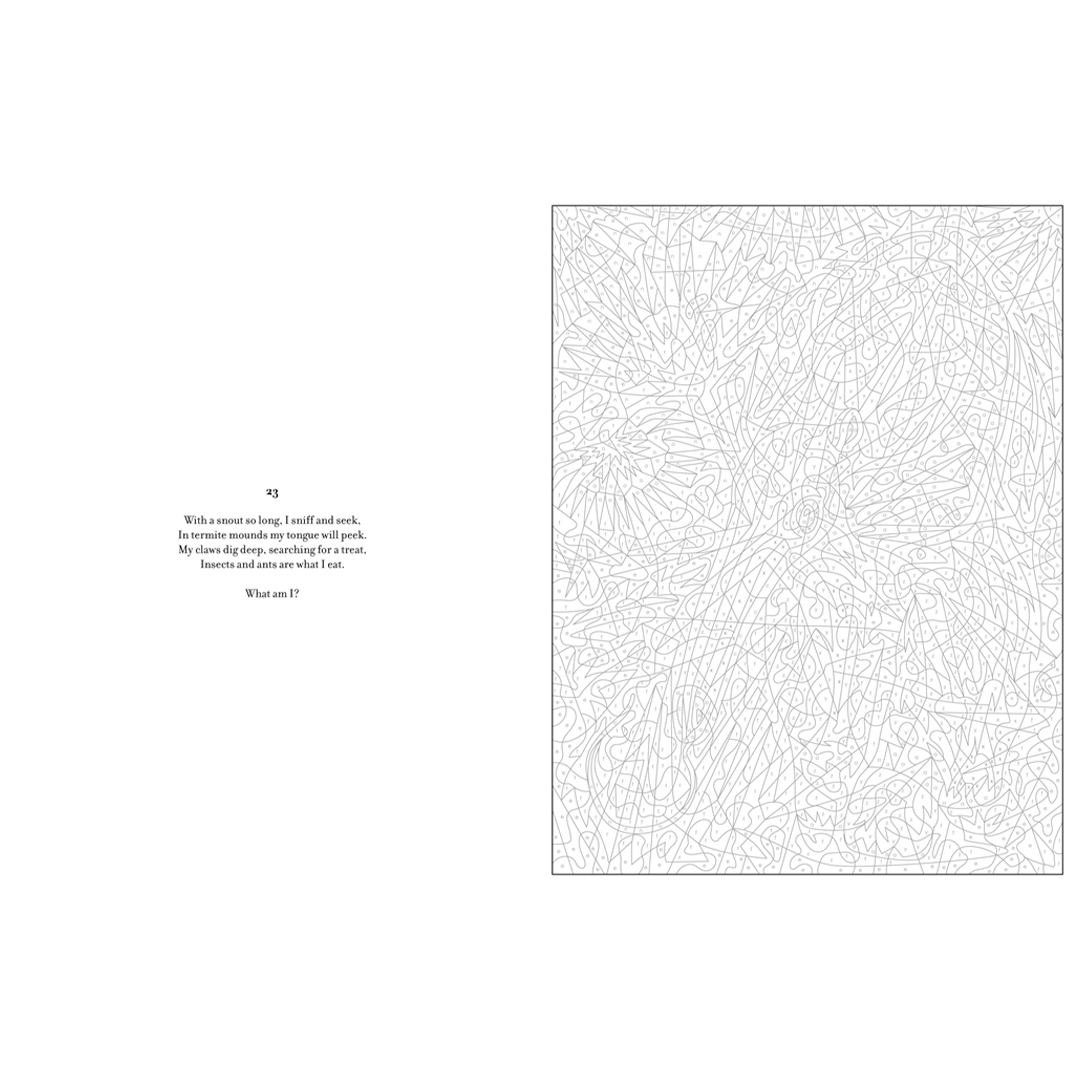 Uusin väritystrendi, joka yhdistää värittämisen ilon ja yllätyksen jännityksen! Jokainen 30 modernista kuvituksesta esittää suositun villieläimen, joka paljastuu värittäessä numeroiden mukaan, sekä arvoituksen pohdittavaksi samalla kun herätät kuvan eloon. Mukaansatempaava irtiotto kaiken tasoisille värittämisen ystäville.
