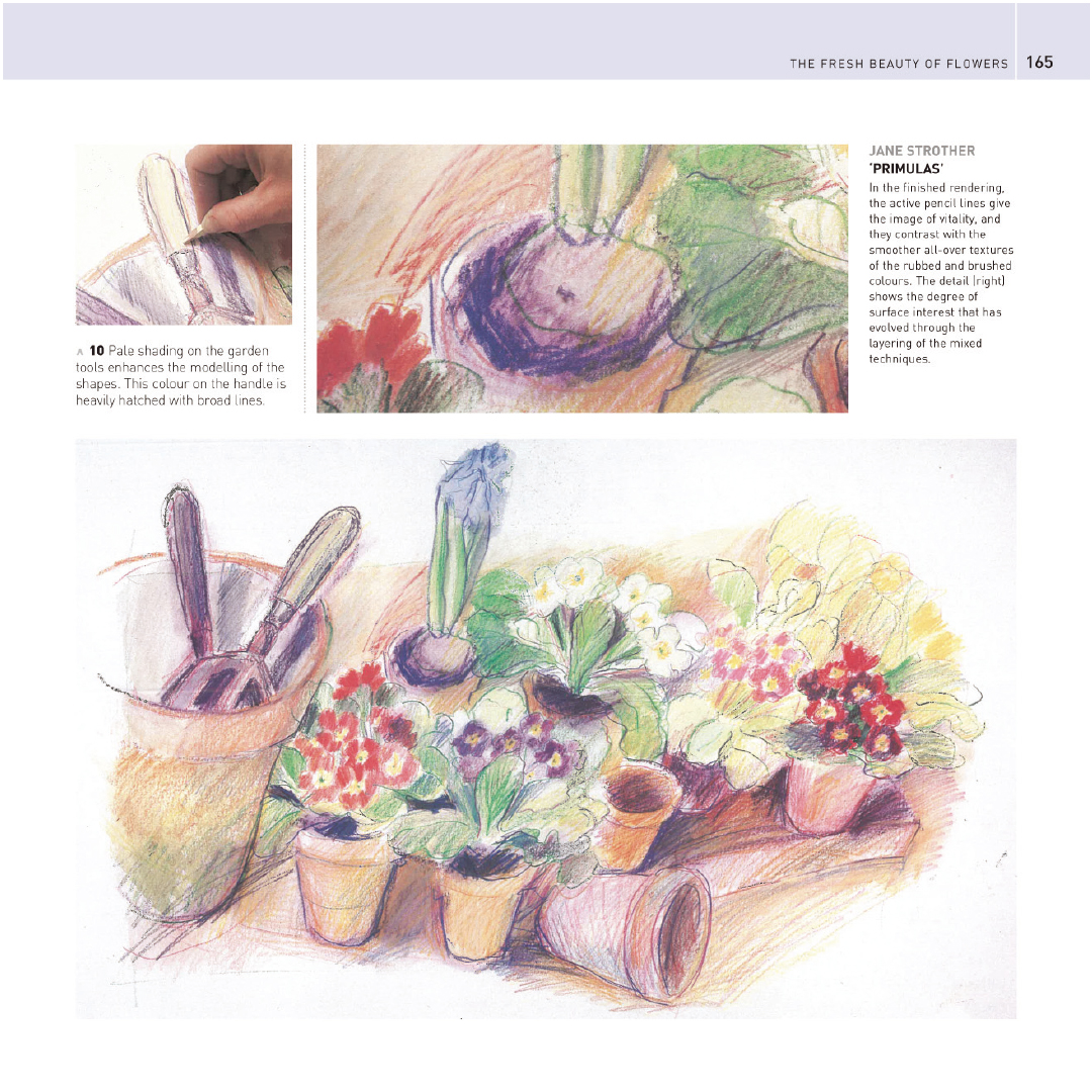 Kirja on täynnä tietoa yleisimpien värikynätyyppien perusominaisuuksista ja väriskaaloista sekä visuaalisia vaiheittaisia esityksiä keskeisistä tekniikoista – sekoittamisesta, kerrostamisesta ja kiillottamisesta sgraffitoon, pisteytykseen ja kohopainantaan. Lukija oppii paitsi sen, miten ammattitaiteilijat käyttävät mielikuvituksellisia ja dynaamisia tyylejä tulkitakseen laajaa aihevalikoimaa, myös saa inspiraatiota yli 150 täydellisesti väritetystä kuvituksesta luodakseen omia upeita taideteoksia.