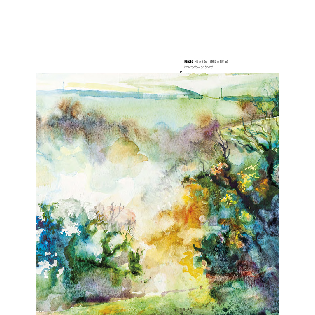 Catherine, joka rakastaa akvarellien virtaavaa luonnetta, on kehittänyt oman maalaustekniikkansa kokeilemalla moderneja akvarellipigmenttejä ja tutkimalla välineen rajoja. Menetelmä, jota hän kutsuu “gravity painting” -tekniikaksi, käyttää runsaasti vettä kaltevalla levyllä ja luo luonnollisen työskentelytavan, jossa värit pysyvät kirkkaina ja elävinä – eivätkä sameina.