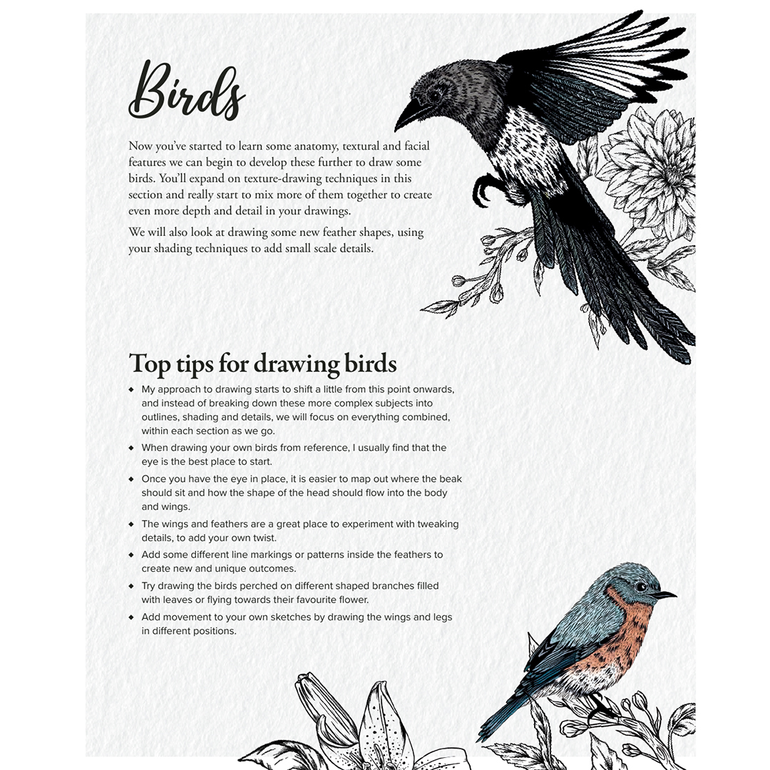 Opi piirtämään kasvi- ja eläinaiheita askel askeleelta Joy-Louise Robinsonin johdolla.