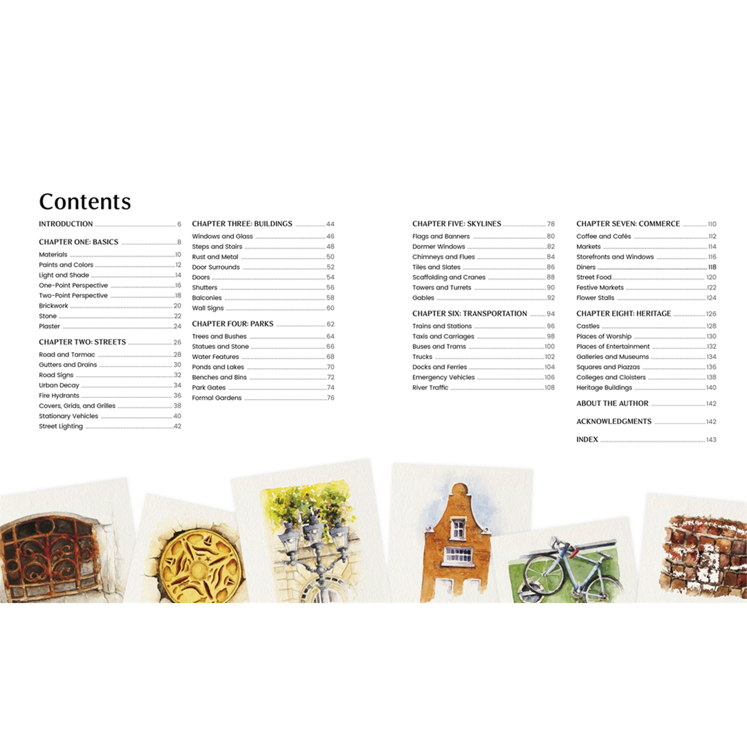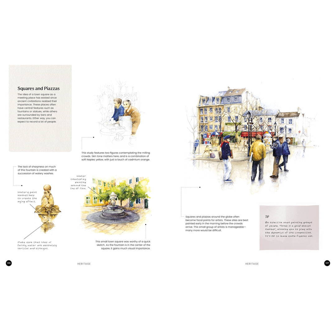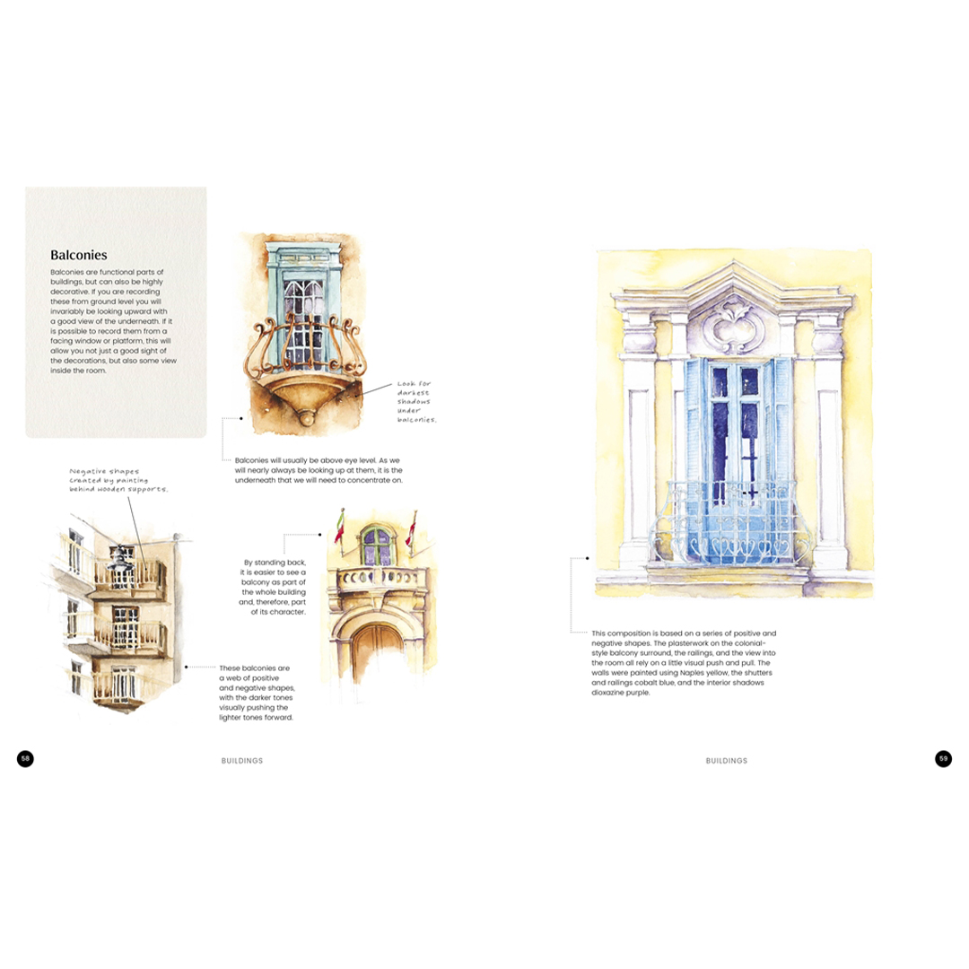 Loistava uusi opas käytännön tekniikoihin akvarellitaiteilijoille, jotka työskentelevät urbaanien maisema-aiheiden parissa.