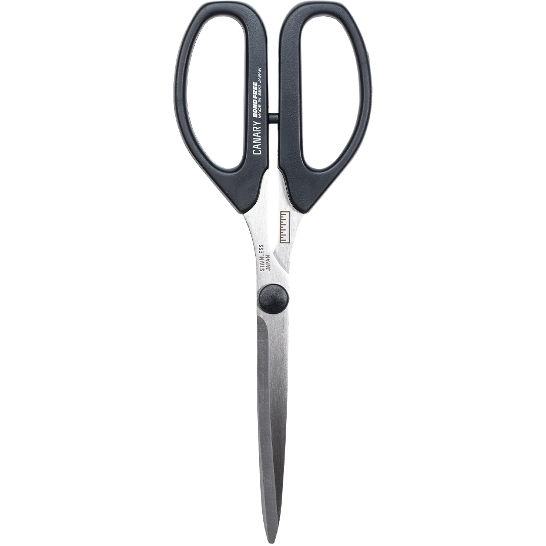 Ammattitason sakset veitsen terävyyttä. Helppo käsitellä 80 mm pitkällä kapealla terällä, käsitellyllä Canaryn bond-free -tekniikalla jotta liima ei tartu. Terässä 70 mm viivainmerkintä.