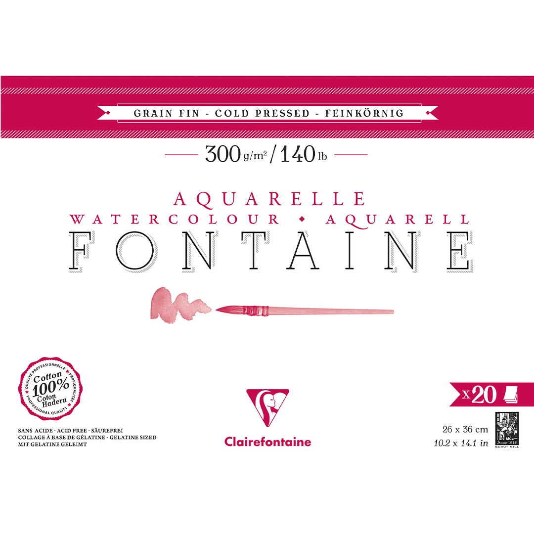 Vuodesta 1858 lähtien ranskalainen Clairefontaine on kehittänyt paperinvalmistuksen taidon huippuunsa. Syvällä käsityöperinteessä ja taiteilijan luomistyötä kunnioittaen yrityksestä on tullut suosittu taiteilijoiden keskuudessa ympäri maailmaa. Fontaine-sarja on kunnianosoitus tälle perinteelle – akvarellipaperi, jossa yhdistyvät klassinen osaaminen ja nykyaikainen tarkkuus.