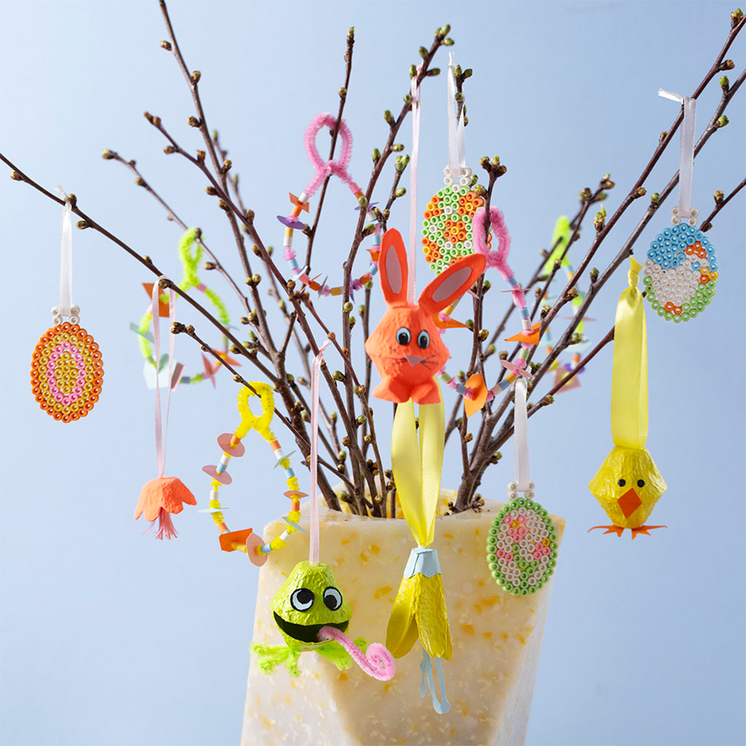 Kokoaa koko perhe yhteen ja tehkää runsaasti koristeita siisteissä, keväisen raikkaissa pastelliväreissä. Täällä on koristeita kaikille vaikeustasoille, jotta sekä nuoret että vanhat voivat osallistua ja pitää hauskaa. Tehkä pienet somat hahmot munakennosta, koristakaa munia silkinnauhalla ja yksinkertaisia munia putkisilikoilla, pahvimotiveilla ja putkipaloilla. Voit myös tehdä kevätkukkia munakennosta tai tavallisesta pahvista. Keskikaa ne kauniiksi kevätkimppuksi, joka kestää ikuisesti.