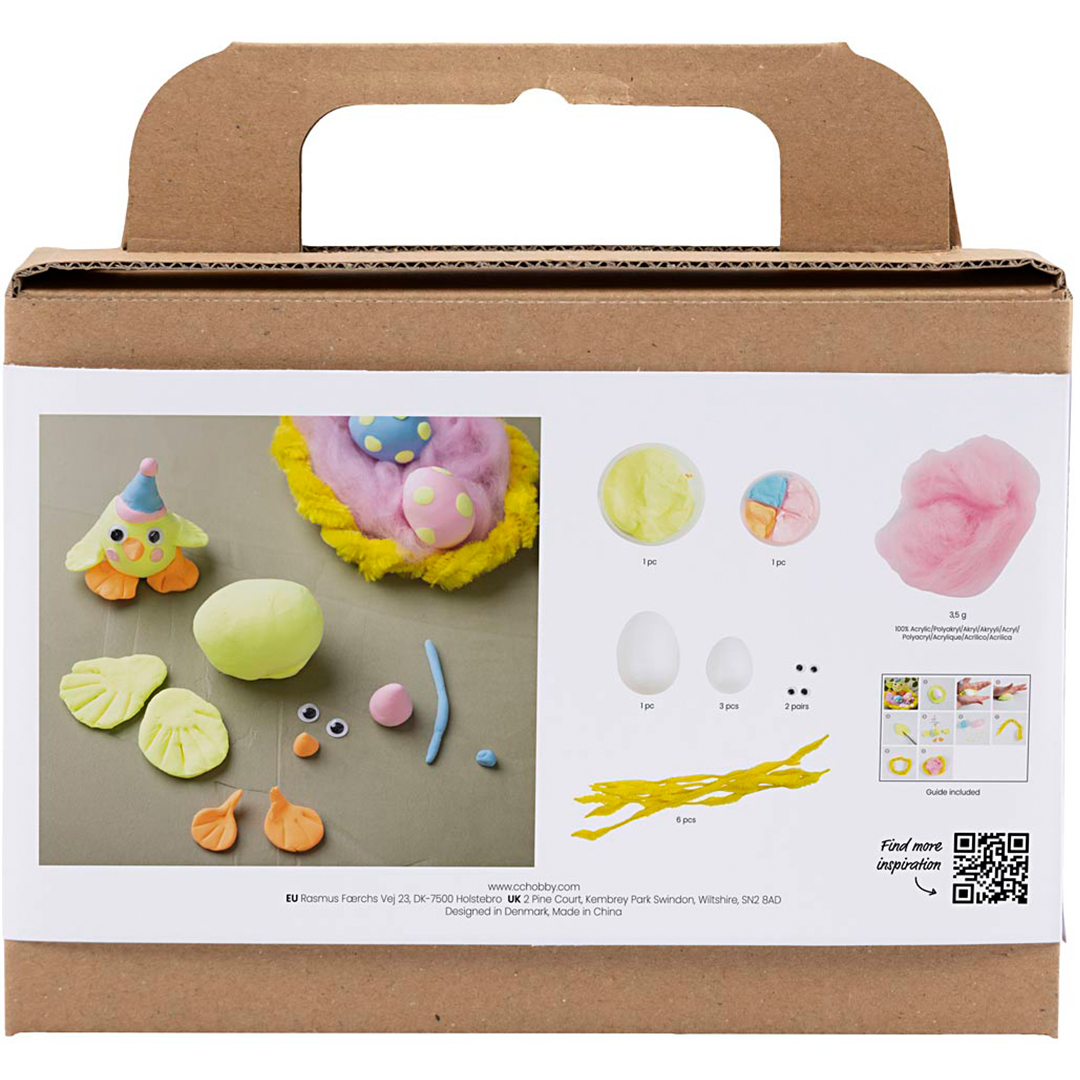 Tällä kitillä voitte tehdä yhdessä lapsesi kanssa oman söpön, pienen kanaperheen Silk Clayista. Silk Clay on pehmeää, joustavaa ja helppoa muotoilla. Kit sisältää kaikki tarvittavat materiaalit ja ohjeet.