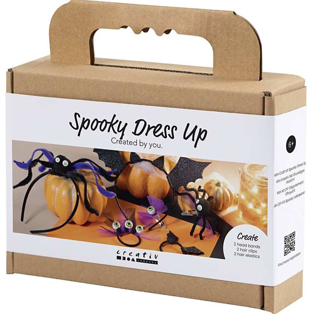 Creative Companyn tee se itse -paketilla lapset voivat tehdä pelottavia hiuskoristeita, jotka sopivat täydellisesti Halloween-pukuihin. Sisältää materiaalit kahteen pääpantaan, kahteen hiuspantaan ja kahteen hiusklipsiin sekä kaikki tarvittavat ohjeet.