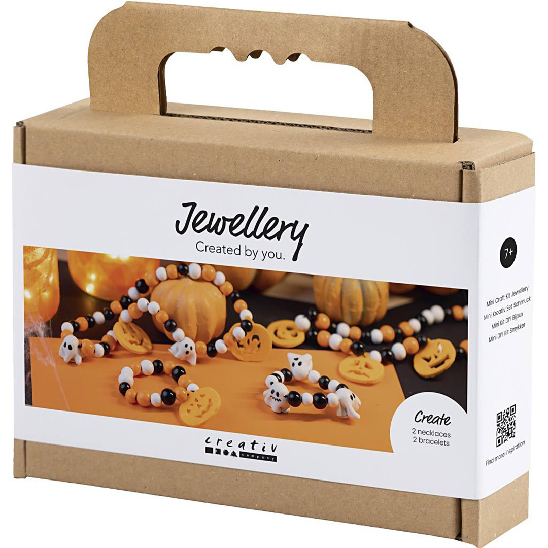 Creative Companyn tee se itse -paketilla lapset voivat tehdä hienoja Halloween-koruja värikkäistä helmistä ja riipuksista. Paketti sisältää materiaalit kahteen kaulakoruun ja yhteen rannekoruun sekä kaikki tarvittavat ohjeet.