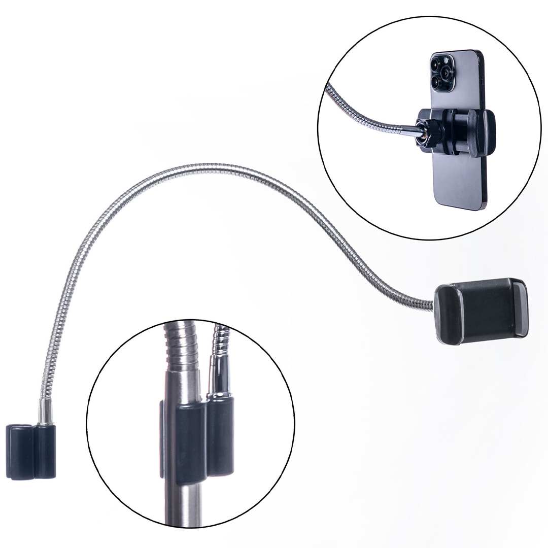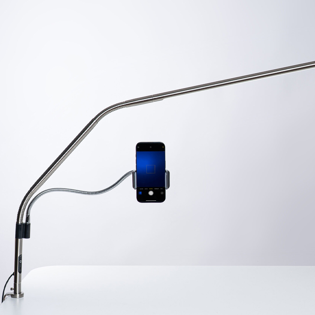 Säädettävä varsi mahdollistaa helpon ja tarkan puhelimen sijoittelun, mikä helpottaa pienten yksityiskohtien tai monimutkaisten tehtävien käsittelyä.
