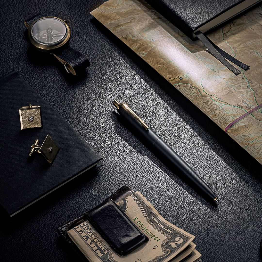 Kynässä on massiivinen messingirunko grafiitinmustalla Cerakote-pinnalla ja kultaisilla titaani-nitridipinnoitetuilla yksityiskohdilla. Se on valmistettu kokonaan metallista, mikä antaa sille hyvin tasapainotetun painon.