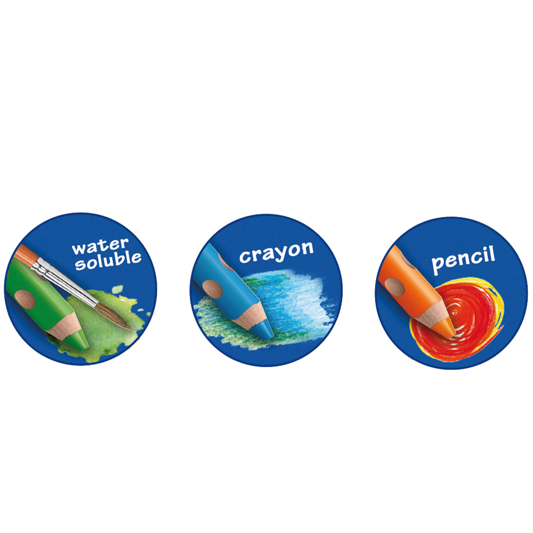 Monipuolinen Groove TripleOne -akvarellikynä. Voidaan käyttää vesivärien, vahaliitujen ja värikynien tapaan. Kirkkaat, yhteensopivat värisävyt. Ergonomiset kynät, joissa on luonnollinen otepinta. Erittäin paksu ja kestävä värilyijy. Värit ovat vesiliukoisia ja niitä on helppo sekoittaa keskenään entistä värikkäämmän ja luovemman lopputuloksen aikaansaamiseksi! PEFC-sertifioitu. Pituus: 12 cm. Halkaisija: 15 mm. Lyijyn halkaisija: 10 mm.