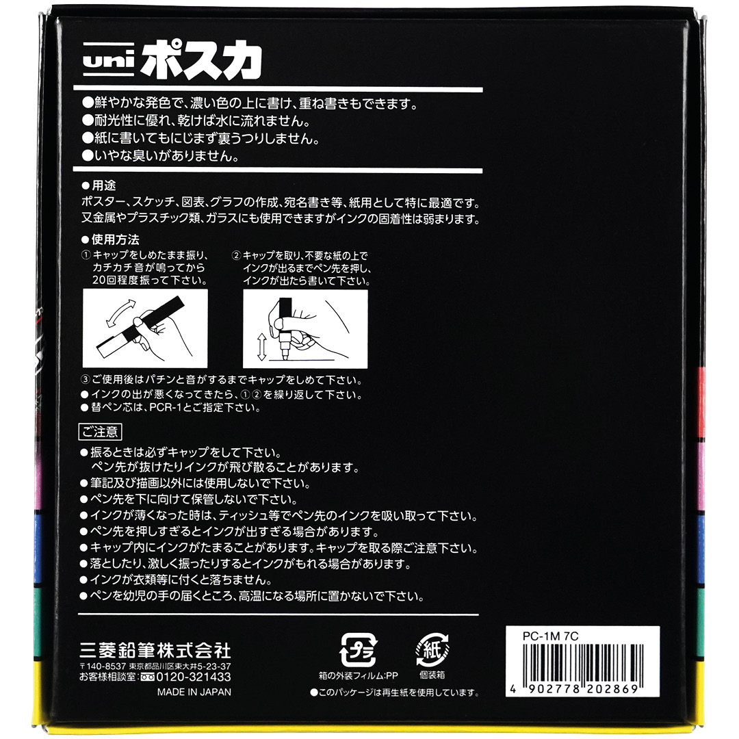 Uni Posca on vesipohjainen peittävä värikynä, jonka pigmentit tarttuvat monenlaisiin pintoihin kuten paperi, pahvi, puu, kivi, tekstiili, lasi, muovi ja metalli. Väri on pysyvä monilla huokoisilla alustoilla ja sen voi poistaa sileiltä pinnoilta, mikä tekee kokeilusta helppoa ilman alustan vahingoittamista. Väri kuivuu nopeasti, on hajuton ja sopii yhtä lailla spontaaneihin askarteluprojekteihin kuin kehittyneempiin taiteellisiin töihin.