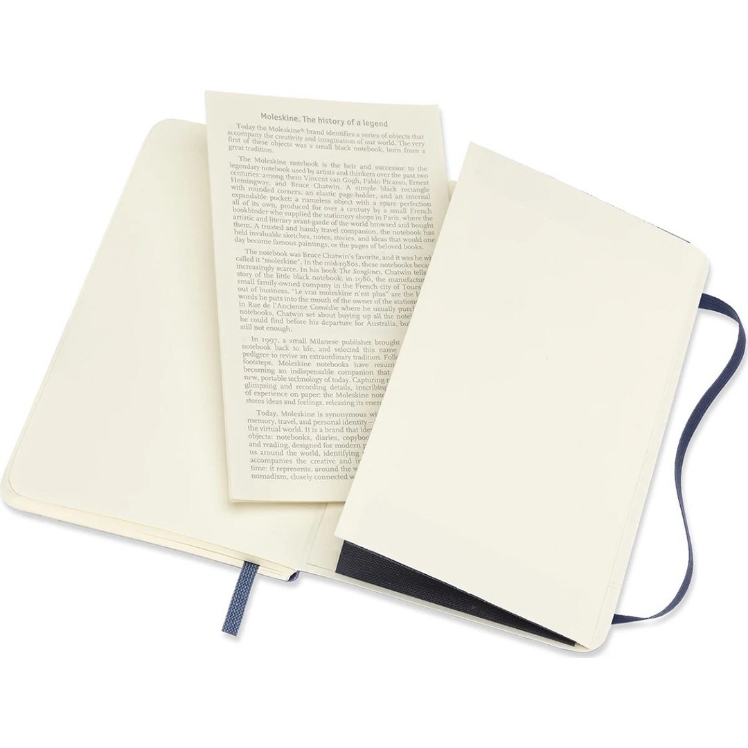 Pehmeäkantinen, joustavakantinen muistikirja Pocket-kokoisena (9x14 cm) italialaiselta Moleskinelta. Muistikirjassa on 192 sivua, laajennettava sisätasku ja joustava nauha, joka pitää muistikirjan suljettuna, kun sitä ei käytetä. Norsunluunvärinen paperi on FSC-sertifioitua, happovapaata ja korkealaatuista!