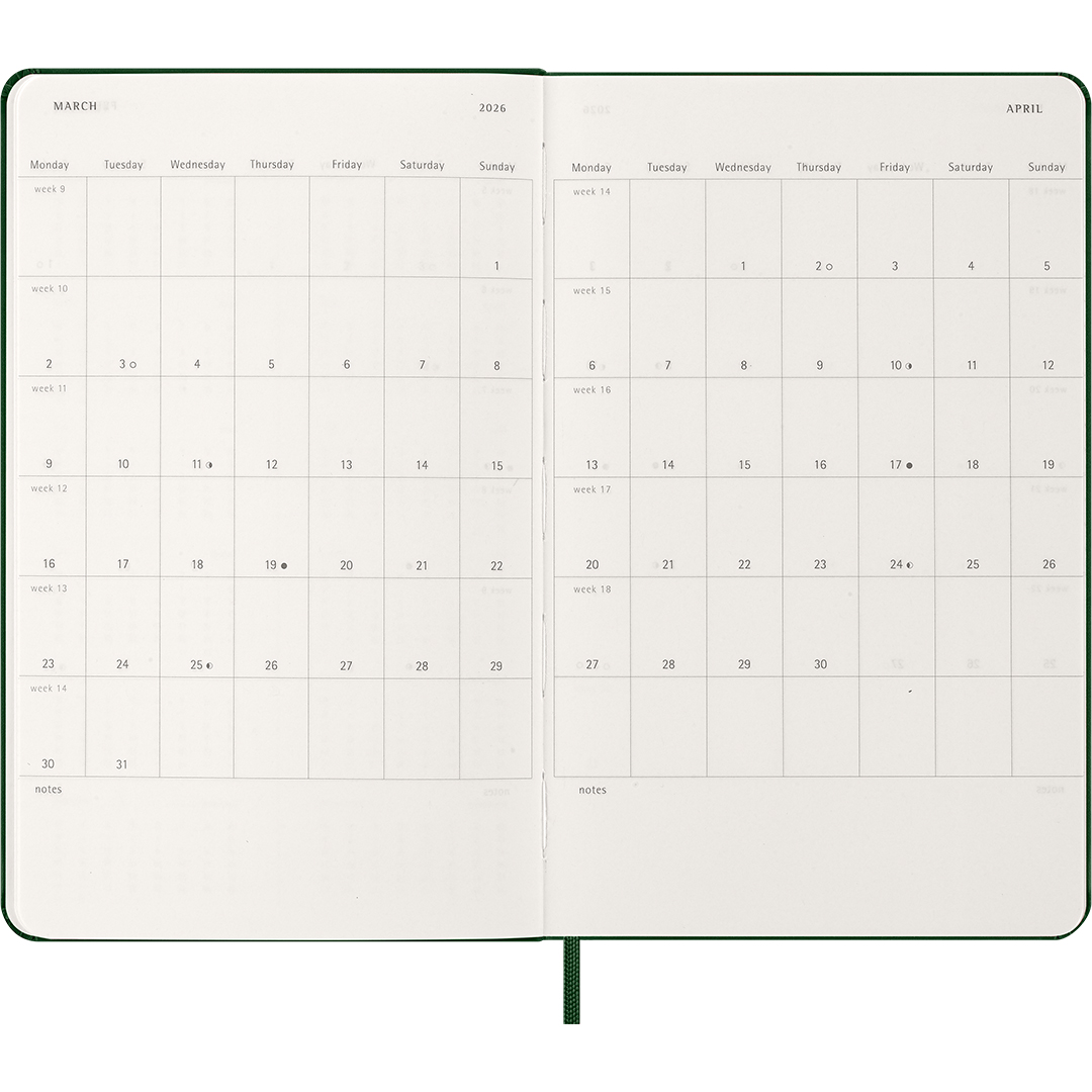 Kalenteri 12M Daily 2026 Hardcover Large Myrtle Green