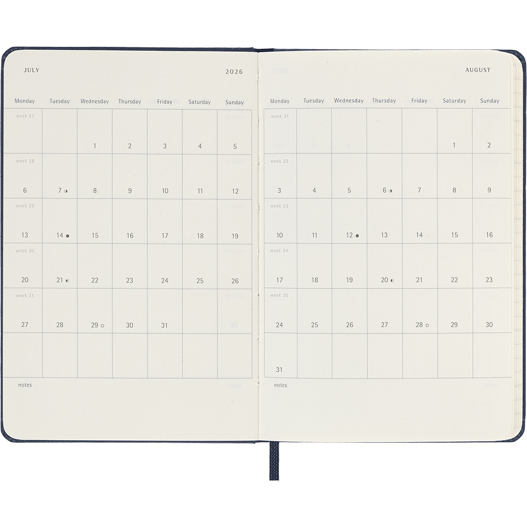 Moleskine on maailmanlaajuisesti tunnettu tuotemerkki, joka tuottaa markkinoiden parhaita muistikirjoja ja kalentereita, jotka ovat saaneet inspiraationsa klassisesta mallista, jota käyttivät sellaiset suurmiehet kuin Van Gogh, Picasso ja Hemingway. Ajattoman muotoilun ja huippulaadun yhdistelmä tekee tästä kalenterista must-have kaikille, jotka arvostavat toimivuutta ja tyyliä.