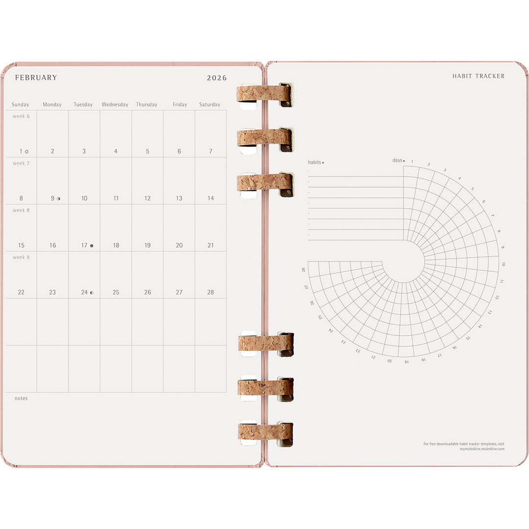 Trendikkäästä korkista valmistetulla spiraaliselkämyksellä ja italialaisen Favini Paper -yrityksen ympäristöystävällisestä, korkealaatuisesta 100 g:n ""Remake""-paperista. Kuukausi- ja viikkosuunnittelun yhdistävässä kalenterissa on runsaasti tilaa kirjoittamiselle ja suunnittelulle, ja se on suunniteltu hyvin tukemaan opiskelijaelämää.