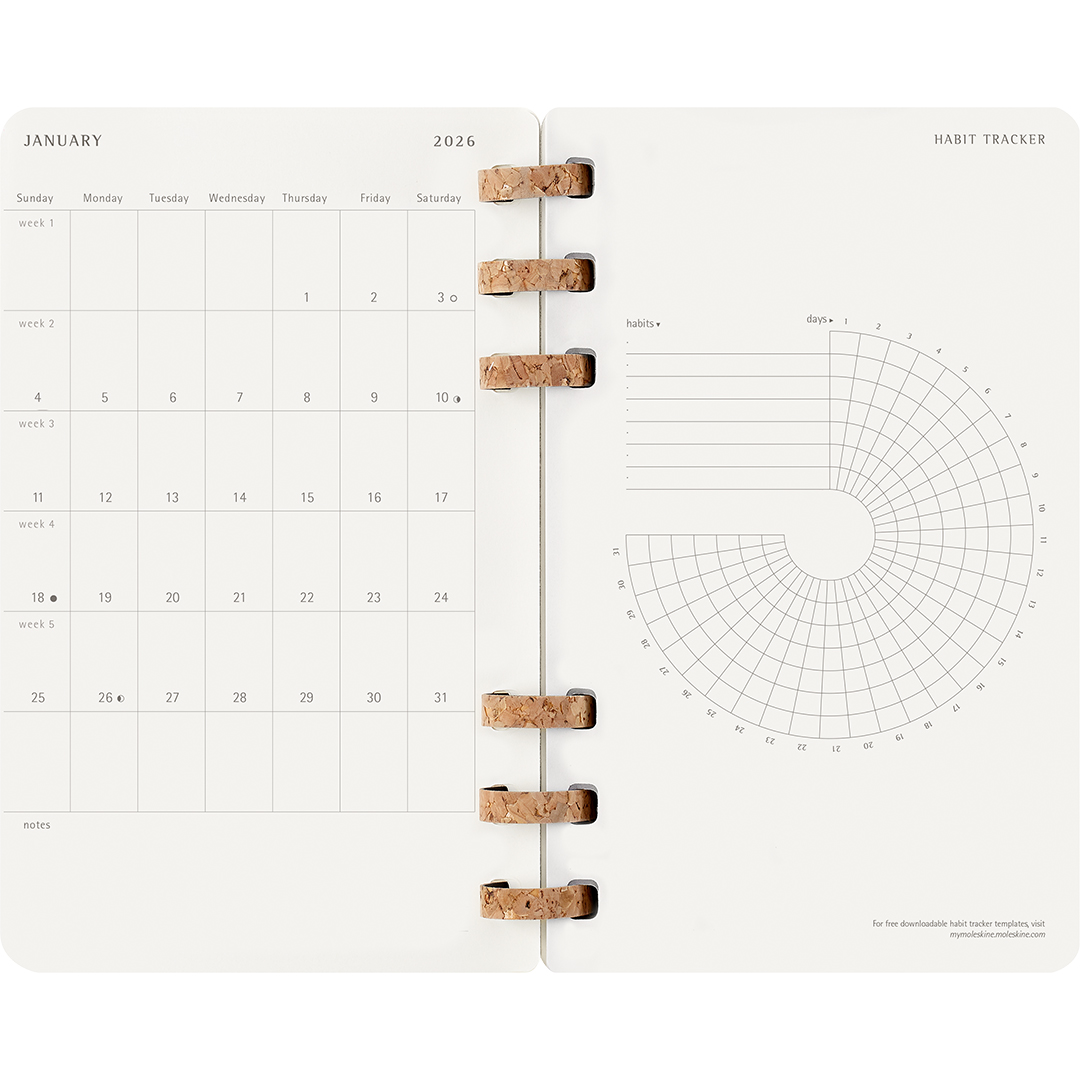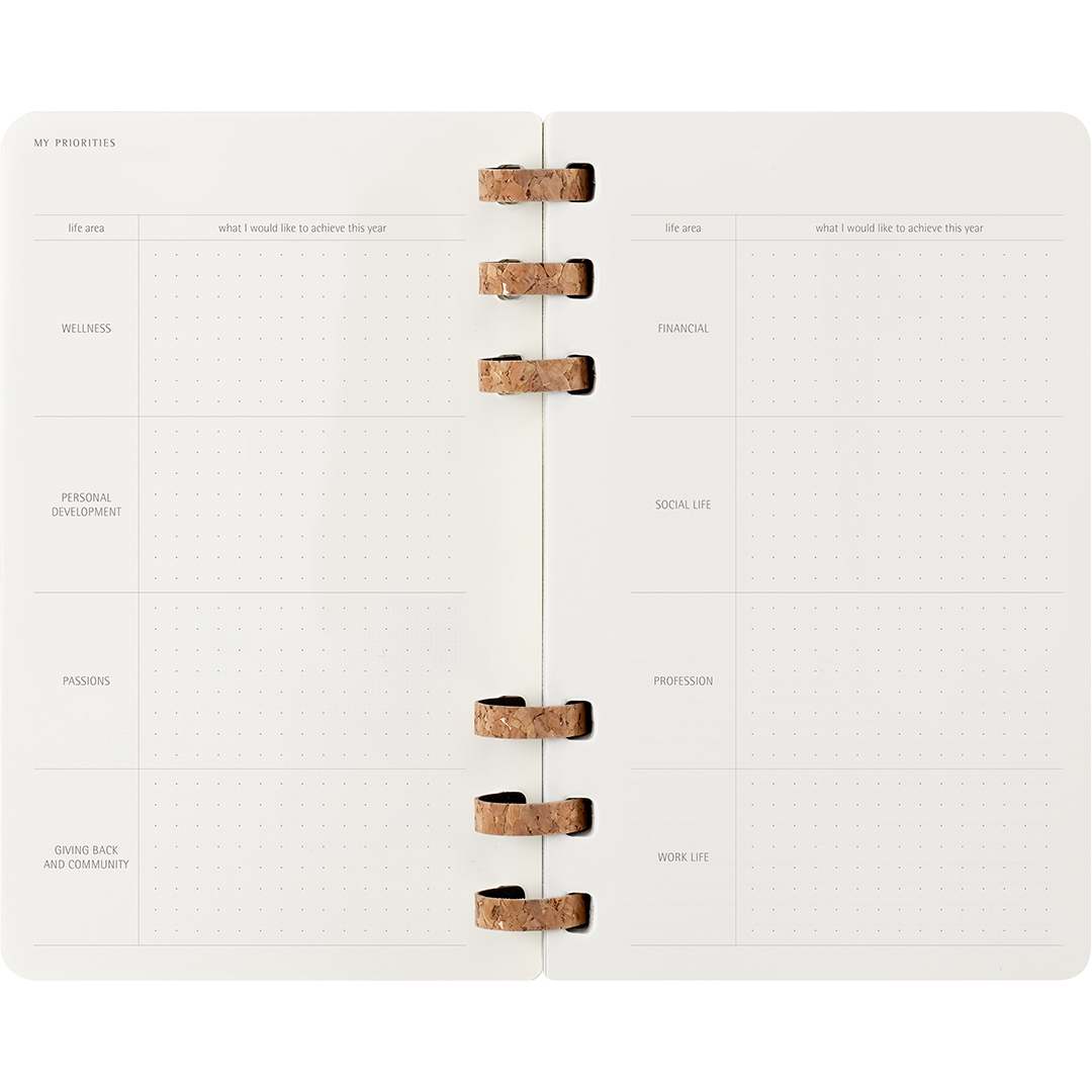 Trendikkäästä korkista valmistetulla spiraaliselkämyksellä ja italialaisen Favini Paper -yrityksen ympäristöystävällisestä, korkealaatuisesta 100 g:n ""Remake""-paperista. Kuukausi- ja viikkosuunnittelun yhdistävässä kalenterissa on runsaasti tilaa kirjoittamiselle ja suunnittelulle, ja se on suunniteltu hyvin tukemaan opiskelijaelämää.