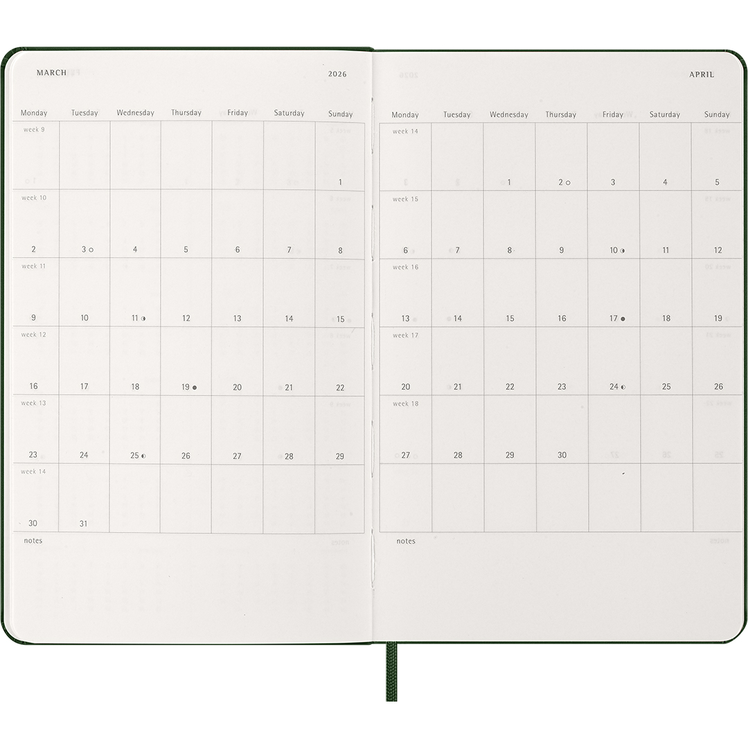 Kalenteri 12M Weekly Notebook 2026 Hardcover Large Myrtle Green
