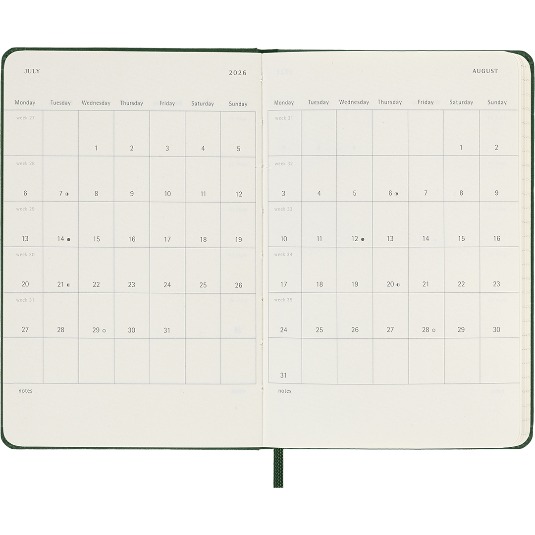 Kalenteri 12M Weekly Notebook 2026 Hardcover Pocket Myrtle Green