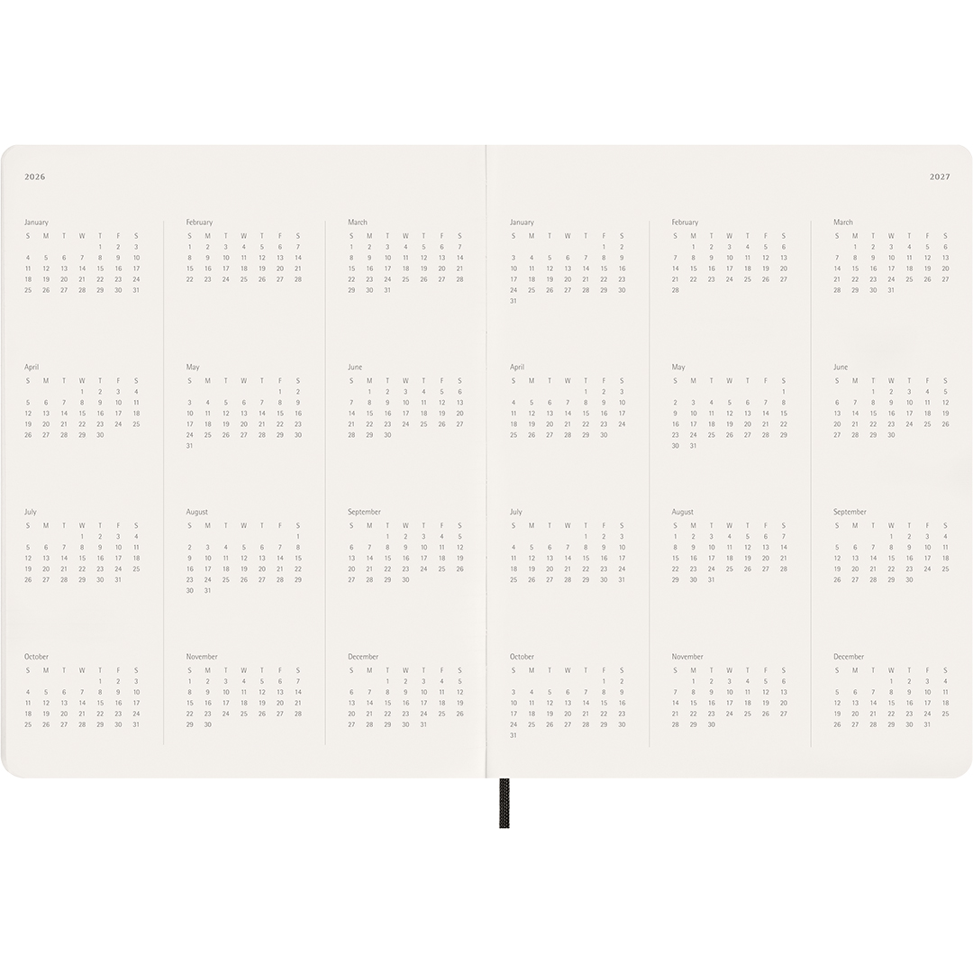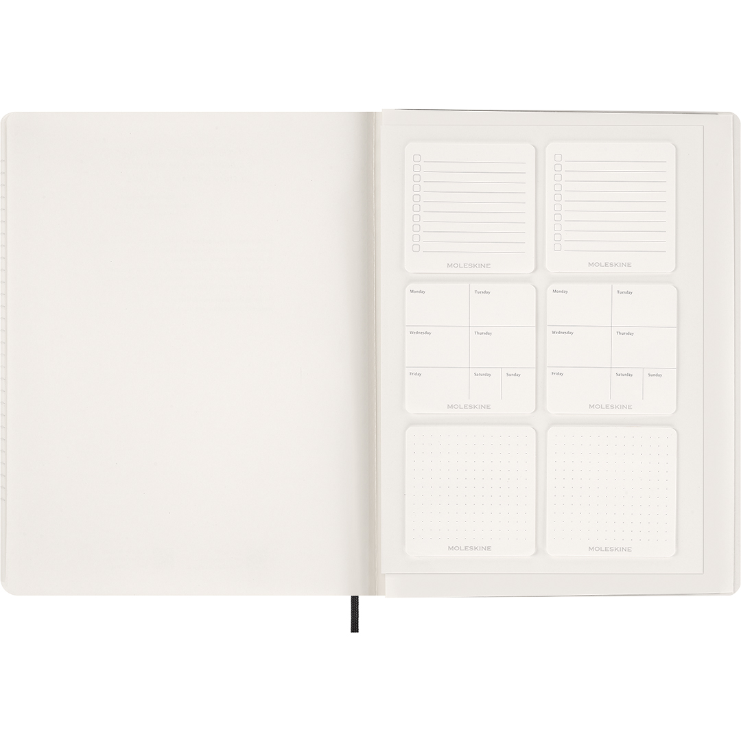 Älykäs vuosikalenteri pehmeässä ja ohuessa muodossa Moleskinelta, päivätty tammikuusta tammikuuhun, kaikki viikonpäivät samalla aukeamalla. Essential Planner on suunniteltu kevyeksi ja helppokäyttöiseksi, täydelliseksi mukana kannettavaksi. Hyödynnä mukana tulevat tarrat ja muistilaput suunnitellaksesi juuri haluamallasi tavalla.
