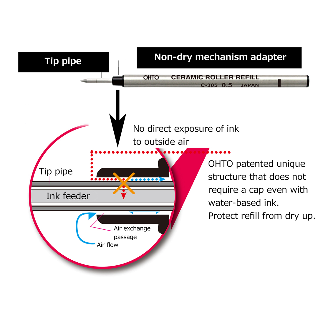 Patentoitu „Non-dry” -teknologia estää kärjen kuivumisen suojaamalla mustesäiliötä suoralta ilmalle altistumiselta, mikä poistaa tyhjiön ja mustepisaroiden riskin. Tämä takaa, että kynäsi on aina valmis kirjoittamaan ilman tahroja.