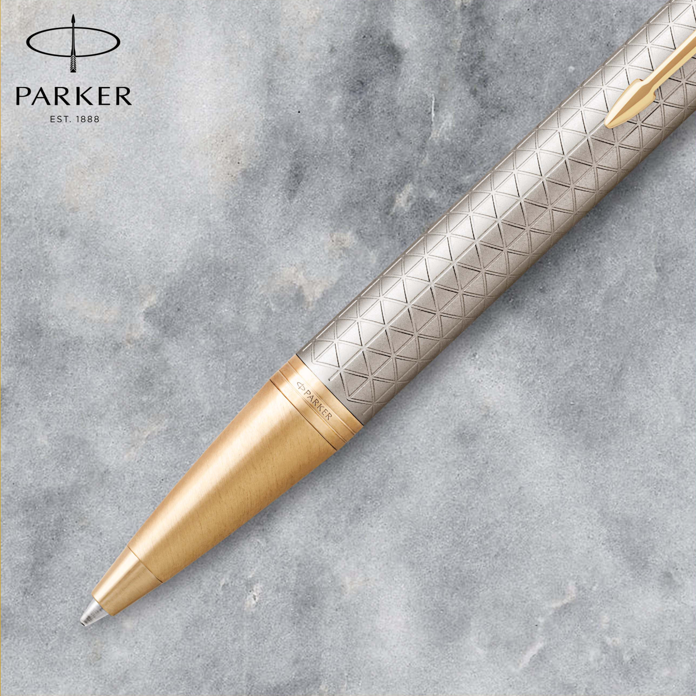 Yli 130 vuoden ajan Parker on valmistanut kyniä ja hionut tekniikoitaan tarjotakseen korkealaatuisia kirjoitusvälineitä. IM Premium ei ole poikkeus. IM Premium on ammattimainen ja tyylikäs kynä, jossa yhdistyvät kapeneva muoto ja ikoniset yksityiskohdat. Kynä on valmistettu messingistä ja siinä on kuulakärki, joka mahdollistaa sileät linjat ja pehmeän kirjoituskokemuksen. IM Premium erottuu selvästi joukosta kynän runkoon kaiverretun kuvion ansiosta – loppusilaus, jonka ansiosta kynä sopii niin lahjaksi kuin sinulle itsellesi. Kiiltäväksi lakattu lämmin hopeanväri kaiverretulla timantin muotoisella kuviolla ja kullanvärisillä yksityiskohdilla varustettuna. Täydennettynä Parkerin omilla patruunoilla kuulakärkikynille. Toimitetaan yksittäisessä lahjapakkauksessa, joka sisältää patruunan. Tämä malli on saatavana myös pallokärki- ja mustetäytekynänä.
