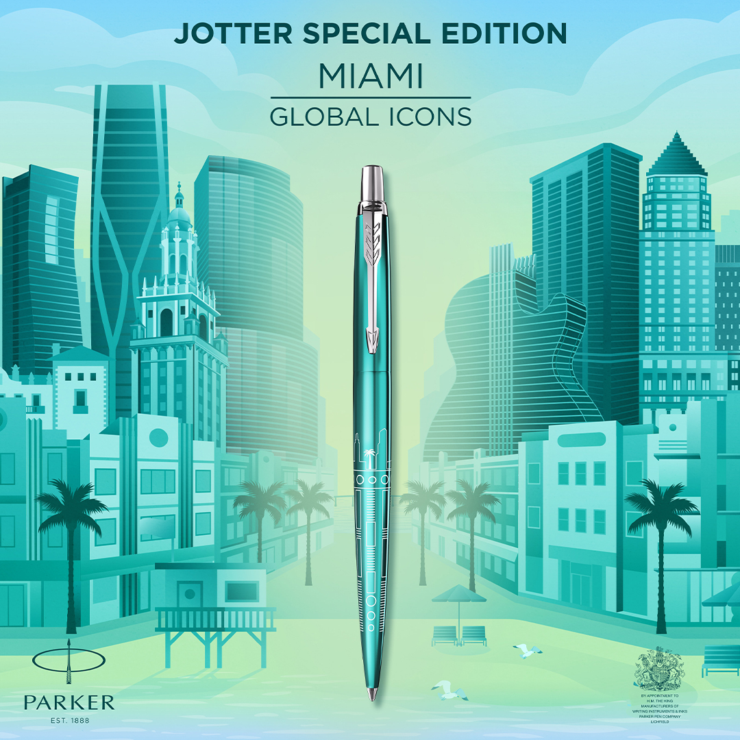 Löydä maailma Parker-kokoelman Jotter Global Icons avulla – kunnianosoitus neljälle ikonilliselle kaupungille, jotka muovaavat aikaamme. Jokainen kynä vangitsee kaupunkinsa olemuksen ainutlaatuisilla designdetaljeilla ja väreillä, jotka kertovat tarinan. Valitse London, Paris, Seoul tai Miami. Tai kerää koko kokoelma!