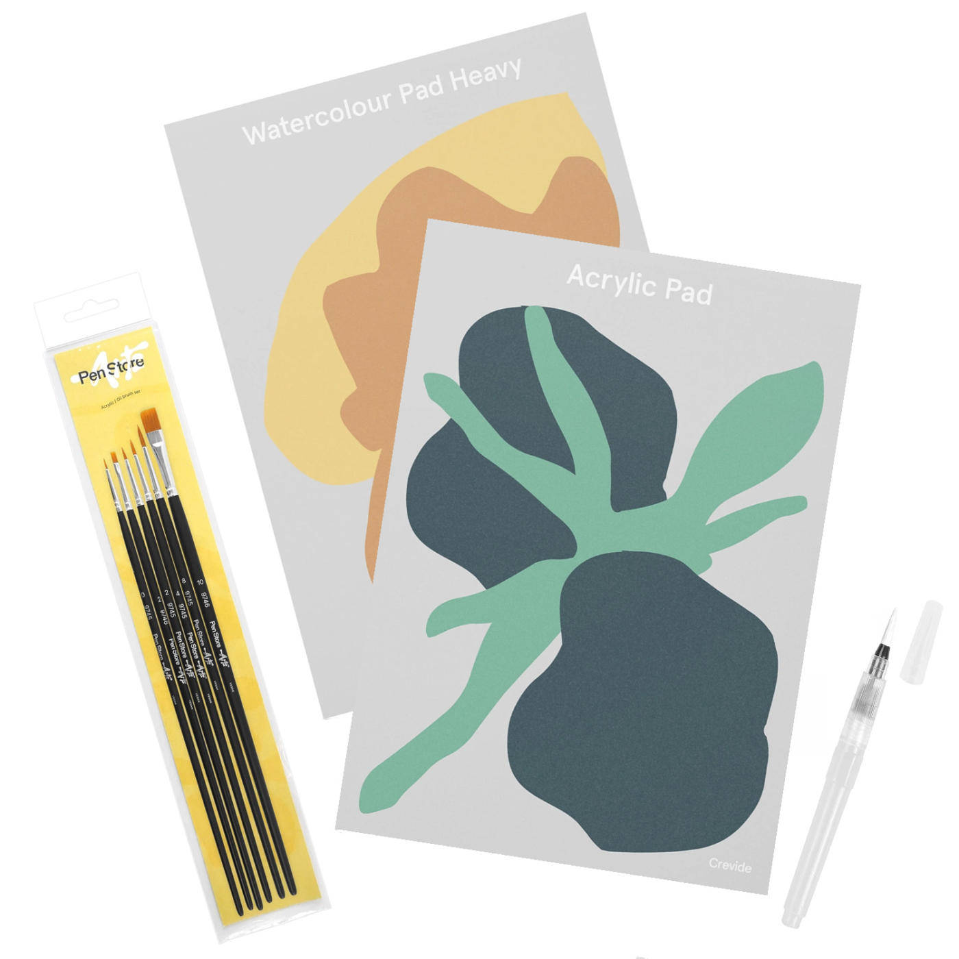 Tämä ”Creativity Booster” -lisäosa sisältää kaksi A4-lehtiötä Crevideilta, 6-osaisen synteettisen sivellinsetin sekä uudelleentäytettävän vesipensselin.