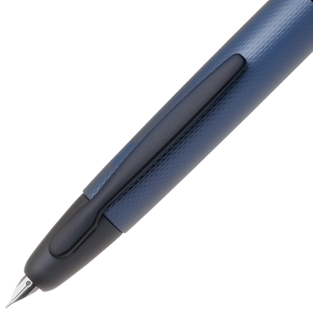 Kynässä on syvän keskelläyönsininen Milanese-mesh-runko satiinimaisella guilloché-pintakuvioinnilla ja tyylikkäillä mattamustilla yksityiskohdilla. Lisäksi siinä on savunvärinen 18K kultainen kynän kärki. Kynän ainutlaatuinen napsautusmekanismi vetää kärjen takaisin kynän runkoon, kun sitä ei käytetä.