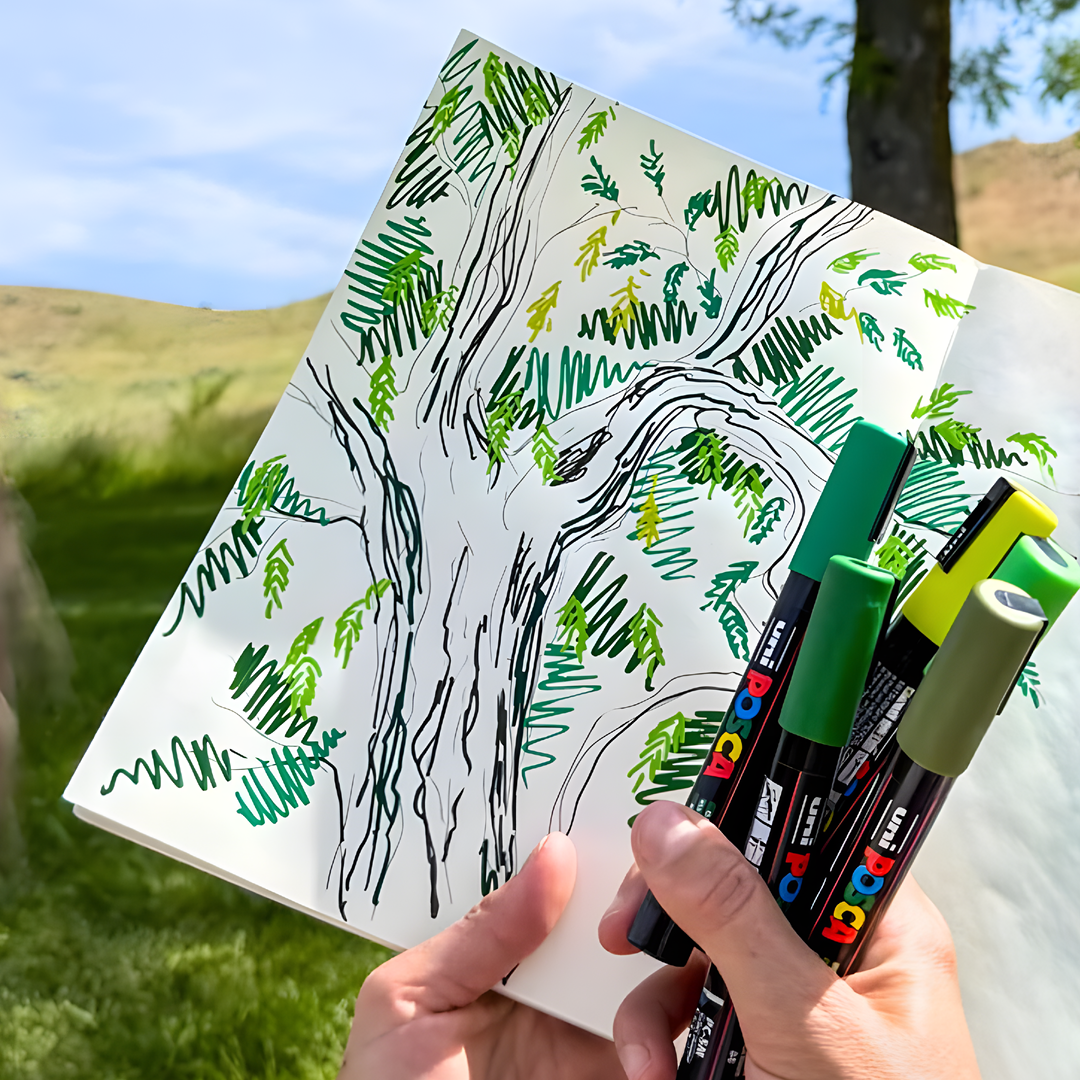 Uuden kärjen ansiosta saat parasta molemmista maailmoista. Kärki on yhtä vakaa ja tasainen kuin klassisessa tussissa, mutta samalla joustava tavalla, joka tuo piirtämiseen ja maalaamiseen aivan uudenlaista tuntua. Tämä tarkoittaa, että Posca ei ole enää vain graafisiin ilmaisuihin tai street artiin, vaan myös luonteva valinta kaikille, jotka haluavat luonnosmaisen, orgaanisemman ilmaisun. Tässä muutamia esimerkkejä, joissa se pääsee todella oikeuksiinsa: