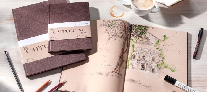 The Cappuccino Pads ja Books Hahnemühlestä ovat korkealaatuisia luonnos- ja muistilehtiöitä, joissa on lämmin cappuccino-sävyinen paperi. Pehmeä ja kestävä pinta sopii erinomaisesti lyijykynälle, värikynille, hiilelle, pastellille ja muille kuiville tekniikoille, ja antaa jokaiselle luonnokselle tai muistiinpanolle elegantin ja harmonisen ilmeen.