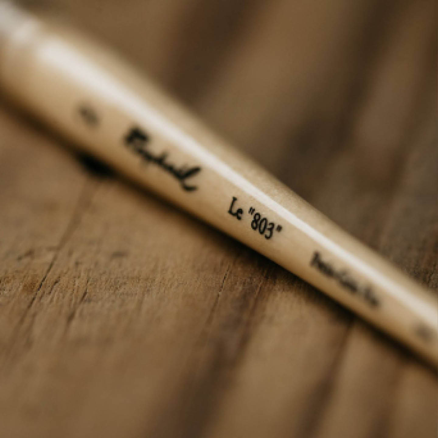 Harja tarjoaa paljon jännitystä jokaisessa siveltimenvedossa ja parhaan kestävyyden. Kirkkaaksi lakattu lyhyt puukahva ja käsin sidottu sulkakynä.