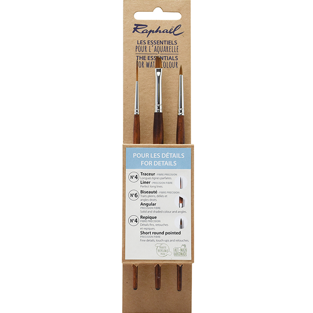 Setti sisältää kolme sivellintä: Precision Short round pointed nro 4, Precision Liner nro 4, Precision Angular nro 6.