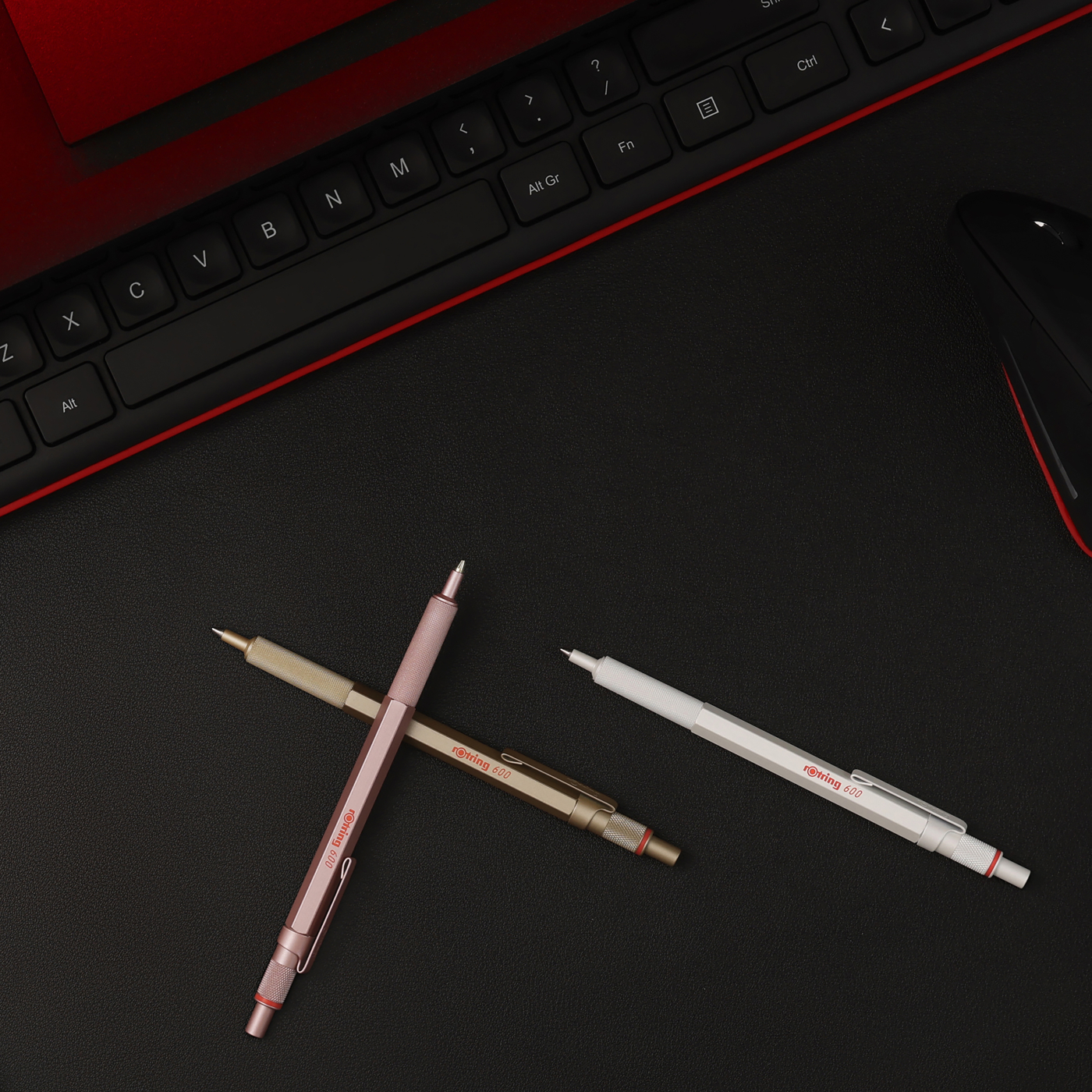 Ikoninen Rotring 600 -kynä on klassinen ja varustettu kätevillä ominaisuuksilla. Yläosa on kuusikulmainen ja alaosa uritettu, mikä antaa sille erittäin hyvän pidon ja takaa tarkan lopputuloksen. Rotring 600 sopii täydellisesti tarkkojen viivojen piirtämiseen.