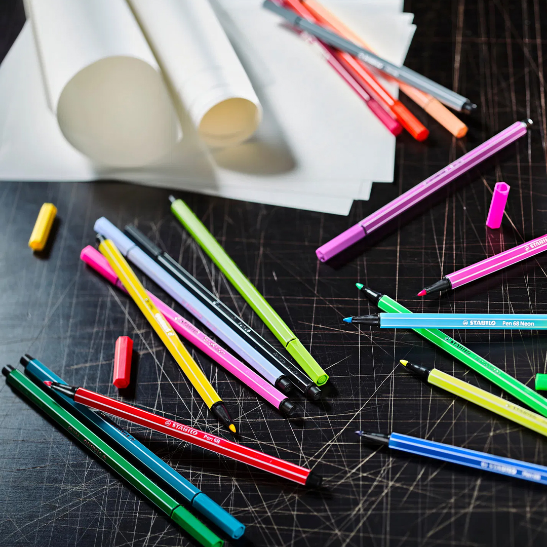 Stabilo Pen 68 -kyniä on saatavilla monissa seteissä, joissa on vahvat ja eloisat värit.
