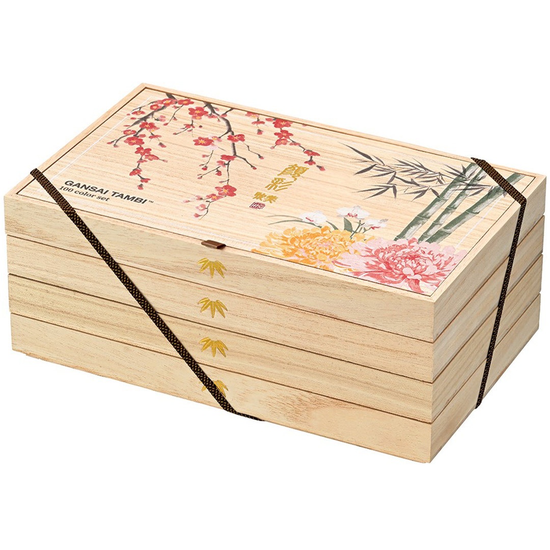 Rajoitettu painos Gansai Tambi -setti, joka sisältää kaikki sata väriä, kauniisti pakattuna ainutlaatuiseen puulaatikkoon.